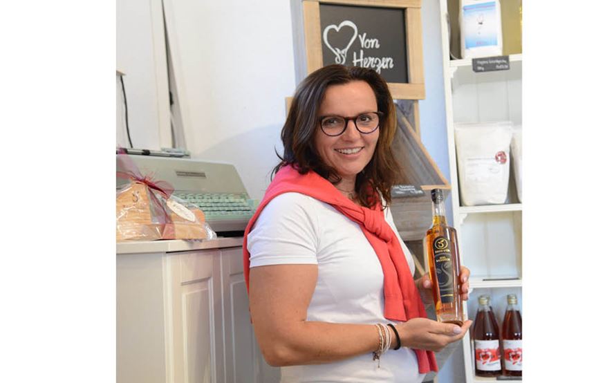 Je suis mère de quatre enfants, femme au foyer et gérante de la société Naturöl AG. La manufacture de la ferme Naturöl existe depuis 25 ans et fait partie de la ferme Kreissbucher-Hof. Elle se compose d’une petite équipe de six collaborateurs. En parallèle à la manufacture de la ferme, nous gérons une exploitation agricole classique axée sur la culture des champs et l’élevage de porcs.