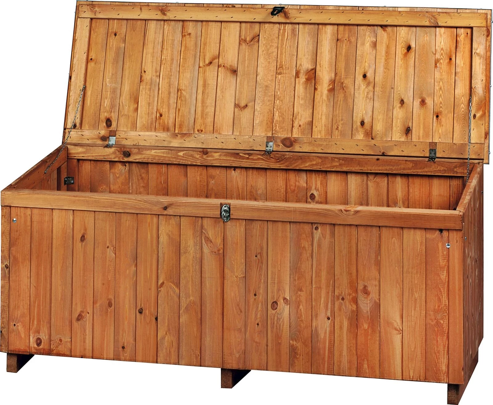 Le coffre à outils comprend 4 éléments préfabriqués. Le couvercle est en tôle galvanisée et protégé contre tout rabattement avec deux chaînes. Le bois d’épicéa est lasuré en brun. Dimensions intérieures: 175 × 50 × 58 cm. Dimensions de l’emballage: 189 × 71 × 27 cm. Poids: env. 50 kg. Temps de montage env. : 60. Surface utile: 0,9 m².