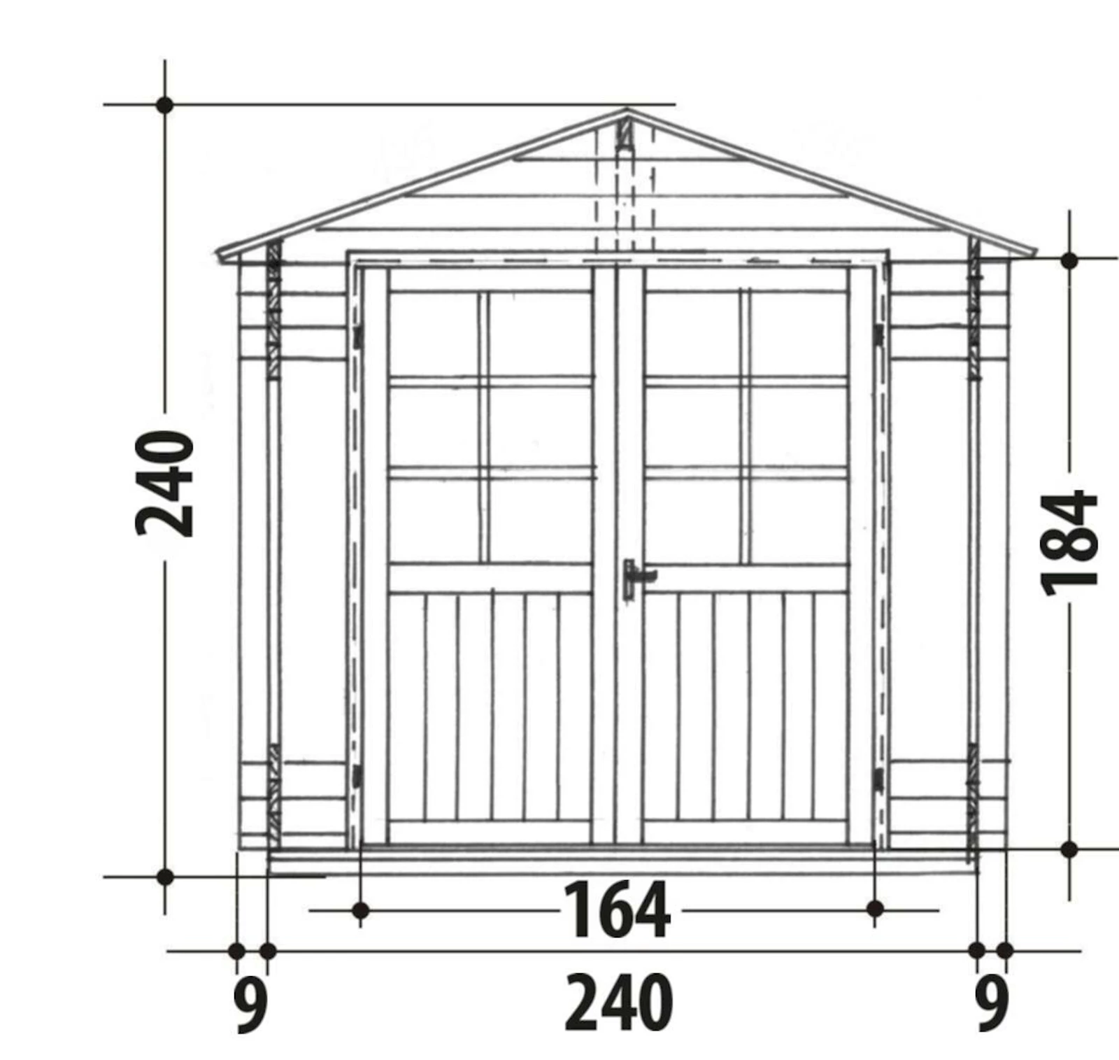 Maison de rondins avec faîte. Kit de construction avec rondins de 28 mm d’épaisseur et porte double prémontée. Avec fenêtres en plexiglas, vantail gauche avec loqueteau.