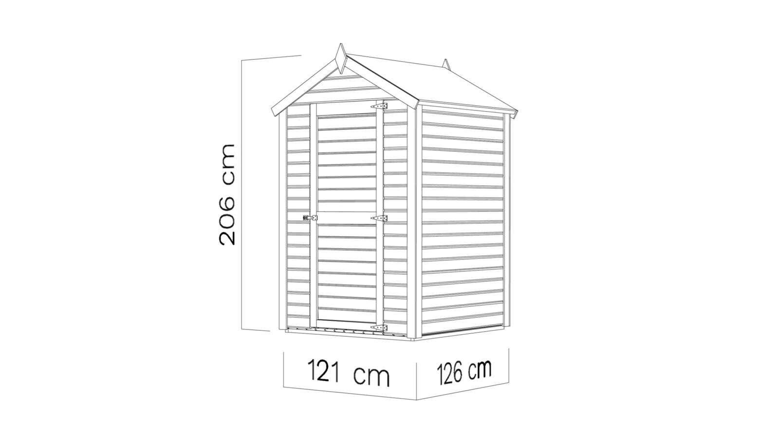 Joli abri de jardin d'une surface utile de 1,44 m². Montage simple grâce aux instructions de montage facilement compréhensibles. Matériel de montage inclus. Dimensions extérieures, avec avant-toit : 1,33 × 1,37 cm. Épaisseur des parois : 14 mm. Bois : épicéa nordique non traité.
