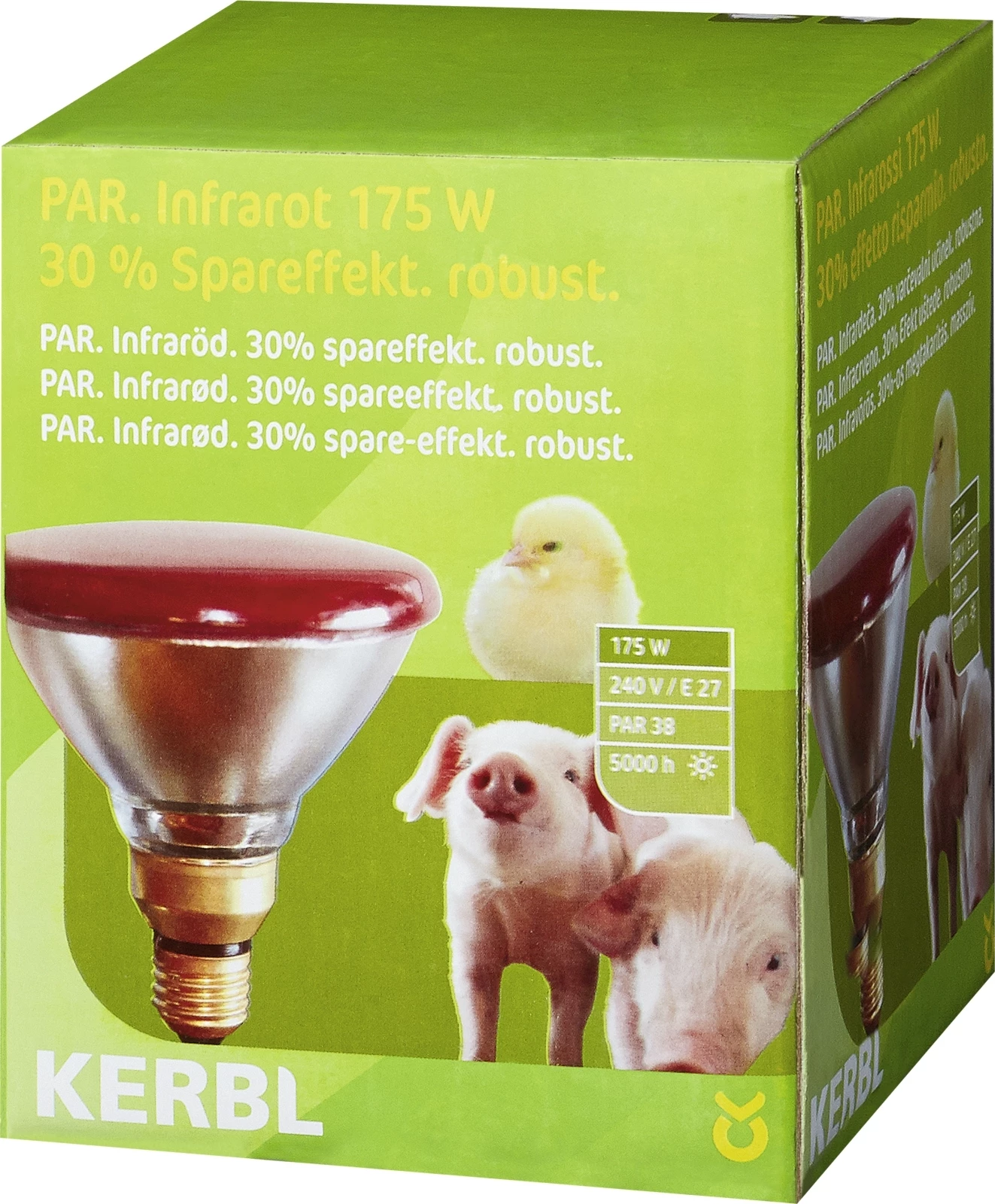 La lampe chauffante infrarouge rouge (100 watts) de conception robuste a un très bon transfert de chaleur, à condition qu'elle aille directement et de manière ciblée sur l'animal. La surface de la peau de l'animal est immédiatement réchauffée. On obtient ainsi un équilibre de l'équilibre thermique et une stimulation de la circulation sanguine dans les couches tissulaires et musculaires. Excellent PAR 38. La lampe fournit environ 5000 heures de fonctionnement à 240 volts.