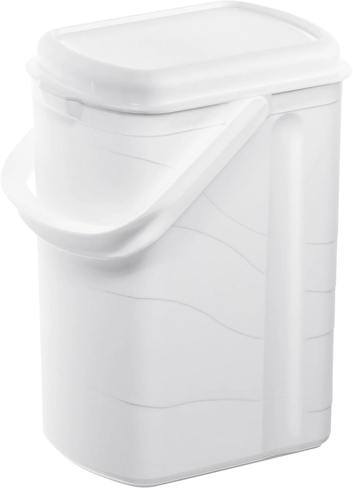 Avec échelle graduée, couvercle et poignée en plastique. Dimensions : 18 × 14 × 24 cm.