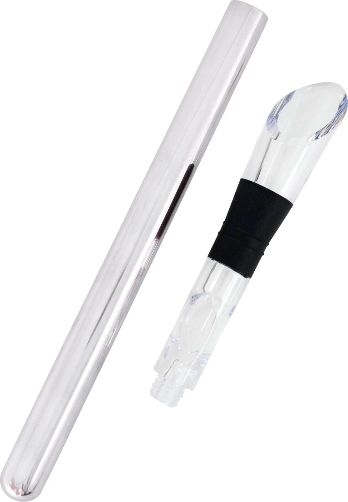 Accessoire idéal pour le vin avec trois fonctions différentes. En tant que refroidisseur, la tige veille à ce que le goût de votre vin ne soit pas dilué au fur et à mesure que la glace fond. L'aérateur intégré dans la tige avec double aspiration mélange de l'oxygène supplémentaire pour améliorer le goût au maximum et le bec verseur permet de verser sans gouttes. Dimensions : 31,5 × 2,5 cm.
