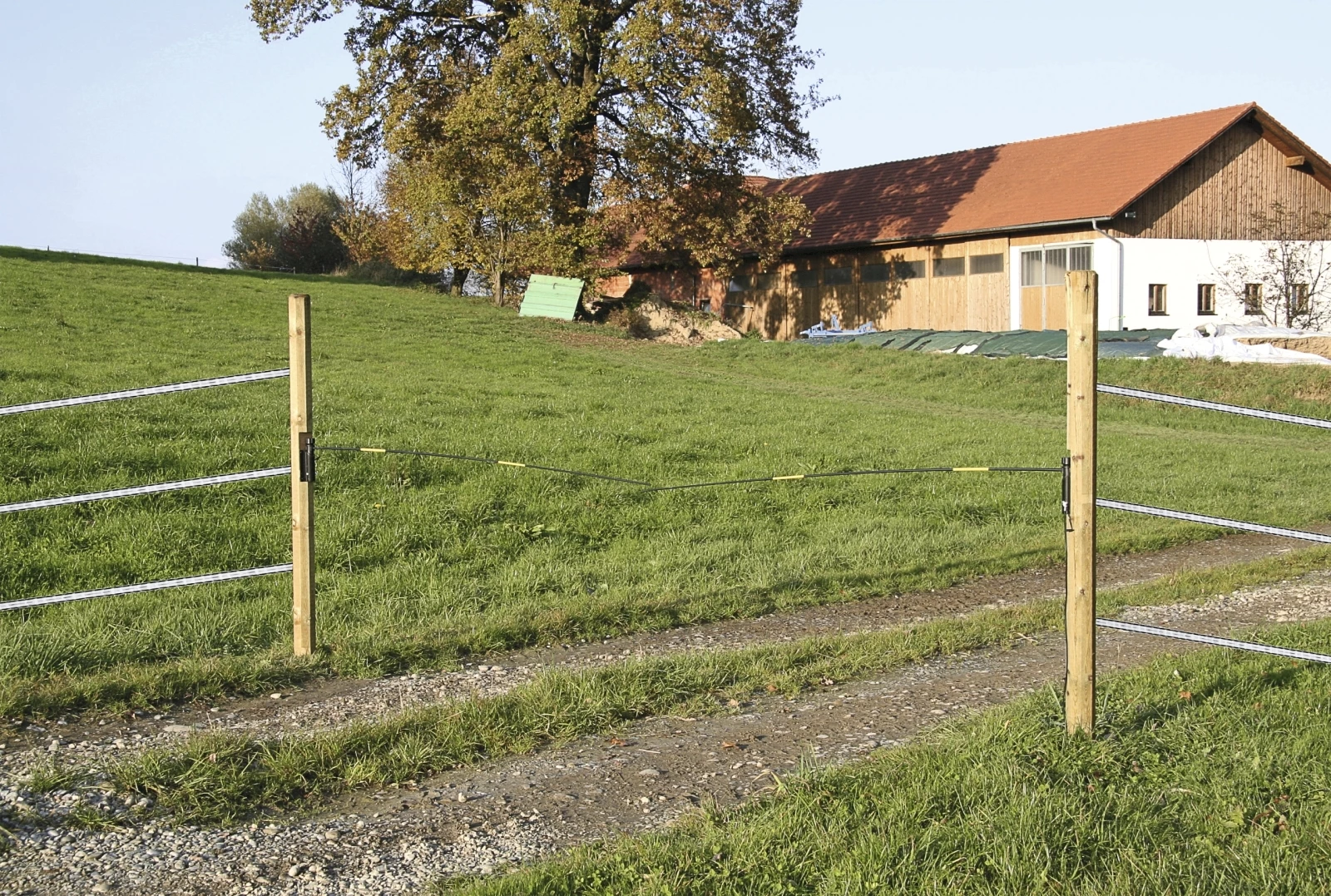Passage libre de véhicules avec poignées de protection spéciales pour piétons. Raccordement au garde-bétail. Montage facile. Avec matériel de fixation. Longueurs : 3,6 m / 5 m.