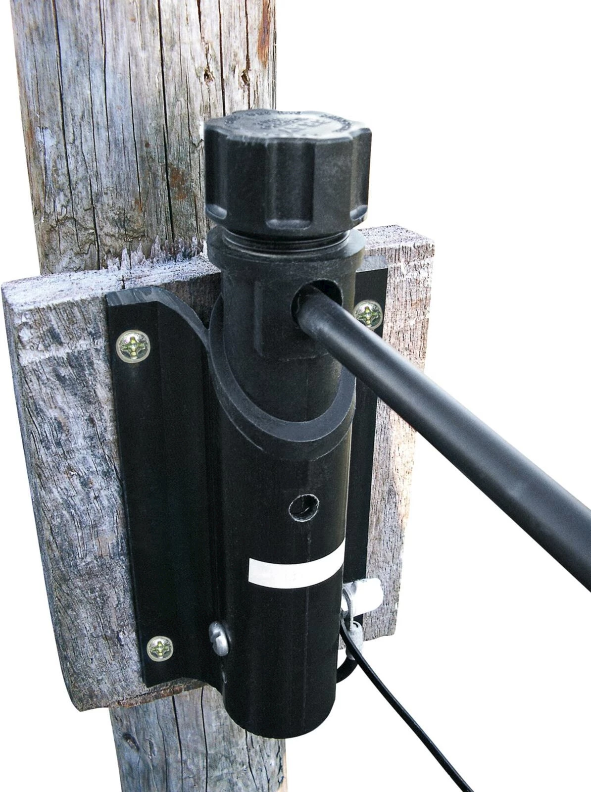 La barrière de bétail permet le passage libre de véhicules. La barrière peut simplement être poussée de côté par le véhicule passant et se ferme automatiquement (sans sortir de la voiture). Poignées de protection spéciales pour piétons. La barrière a en outre un raccord à l’appareil garde-bétail et est simple à monter. Le matériel de fixation est inclus. La barrière fait 5 m de long.