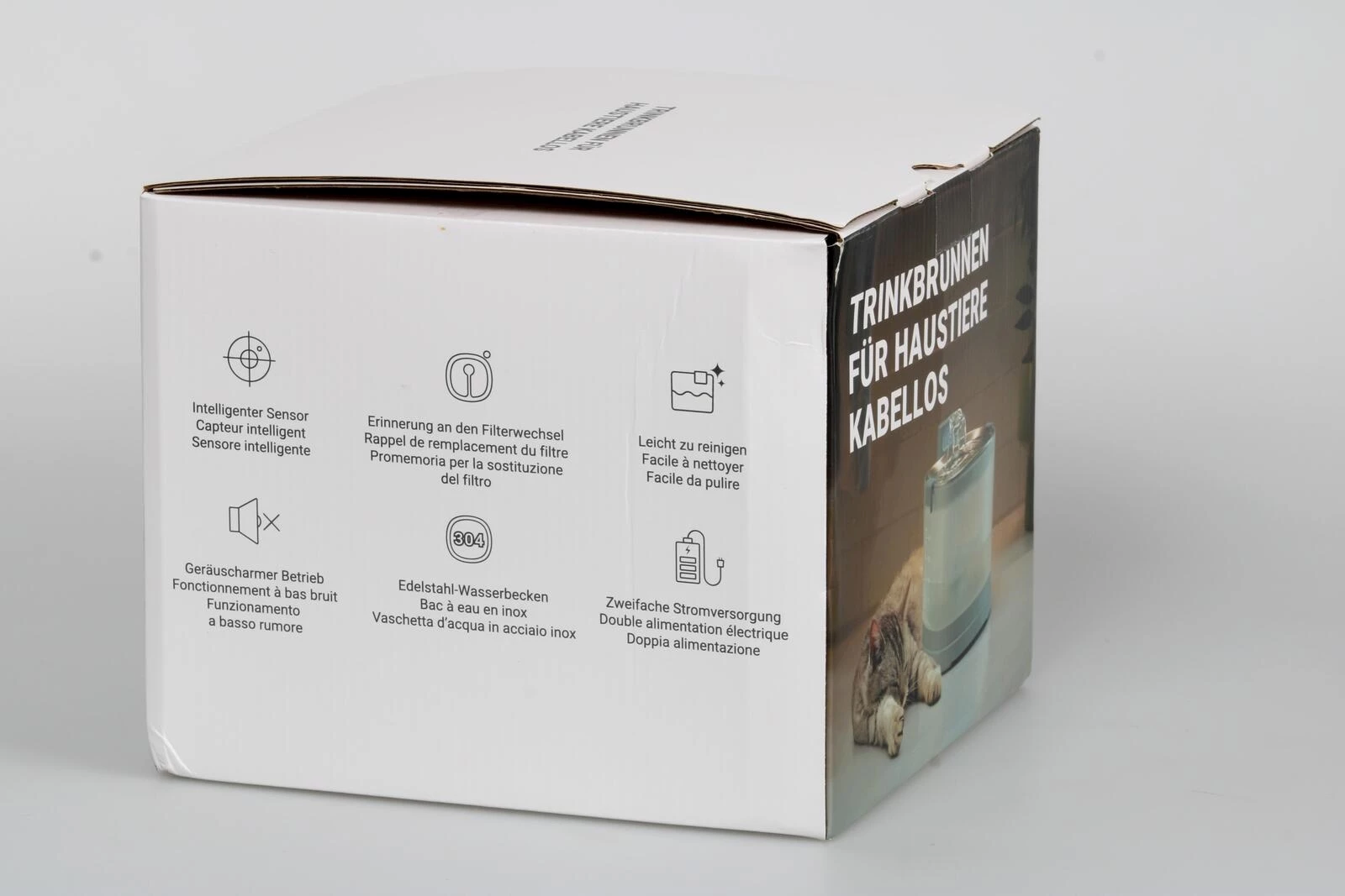 Le nettoyage est également délibérément simple. De nombreuses pièces peuvent être aisément démontées et une grande partie d'entre elles passent même au lave-vaisselle, ce qui permet un entretien rapide et facile de la fontaine au quotidien. Un indicateur pratique vous informe en temps utile du moment où le filtre doit être changé, afin que l'eau de votre animal reste toujours propre et fraîche.