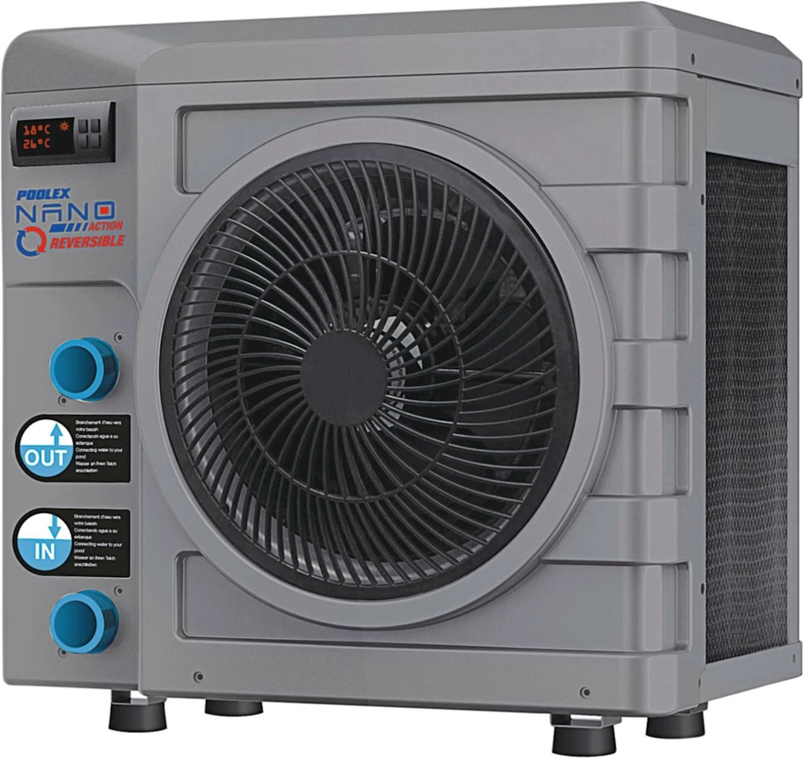 Pompe à chaleur spéciale pour piscines jusqu'à 35 m³. Elle a été conçue pour faciliter la vie du propriétaire de piscine. Elle peut être raccordée tout simplement à tous les systèmes de filtrage courants grâce aux raccords de 32 ou 38 mm. La plage de chauffage se situe entre 15 et 40 °C et elle a une puissance de 5 kW. La pompe à chaleur fonctionne à des températures extérieures de -5 à 43 °C. L'échangeur thermique est en titane, résistant au sel et extrêmement durable. Conçue comme une pompe à chaleur haut de gamme, elle offre des performances optimales dans un format ultra compact. L'appareil se transporte facilement après la saison en raison son poids de seulement 26 kg. Branchez l'appareil à une prise courante et chauffez votre piscine. Cette pompe à chaleur n'est pas un appareil de chauffage, mais elle peut réchauffer la température de l'eau d'environ 2 à 5° C. Ce modèle dispose en outre de la fonction "rafraîchir". Vous pouvez ainsi refroidir l'eau de votre piscine les jours d'été très chauds.
