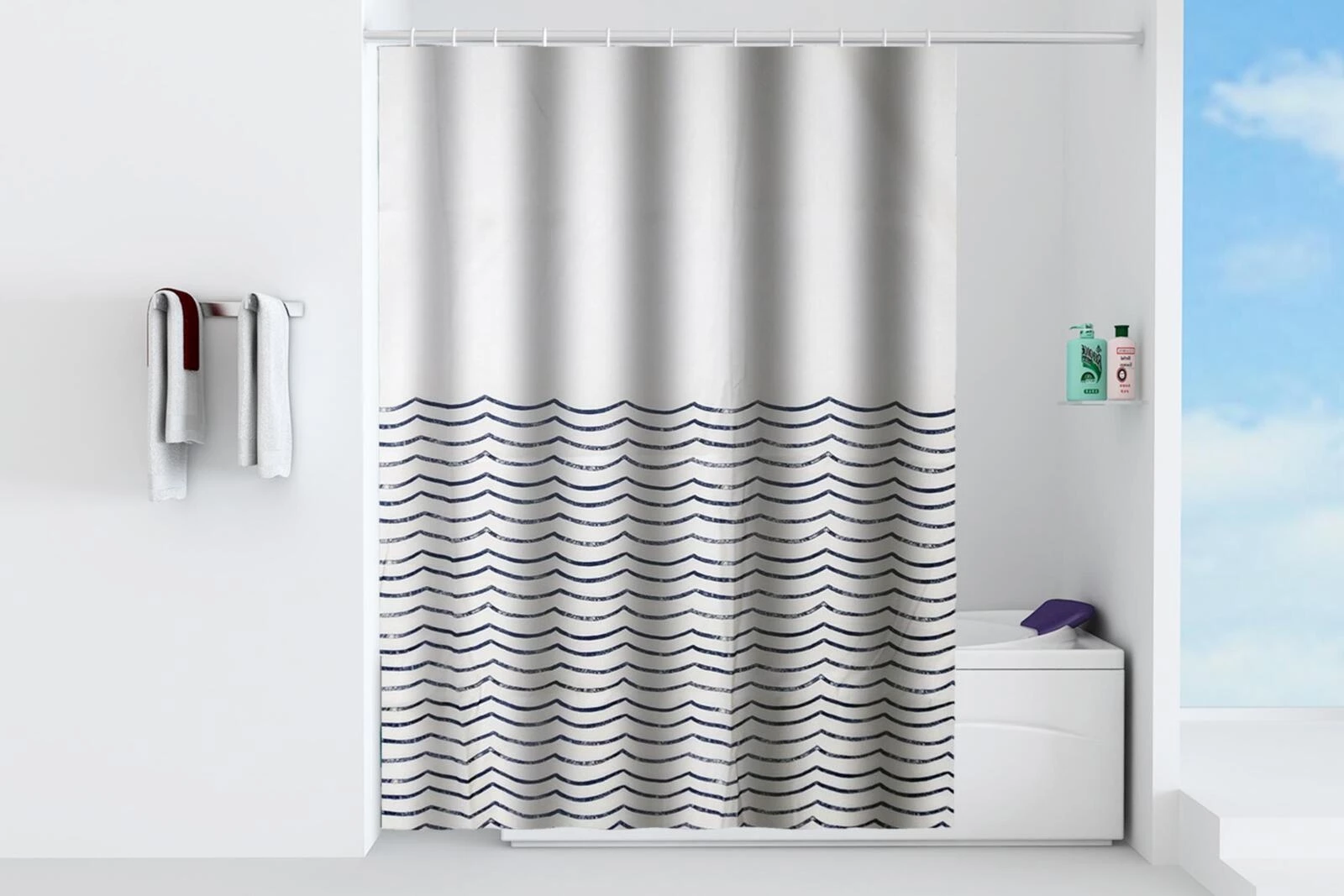Le rideau de douche est composé à 100 % de polyester recyclé. Avec un grammage de 90 g, il est léger mais néanmoins robuste. Le matériau est exempt de PFAS et donc de produits chimiques nocifs souvent présents dans les revêtements hydrofuges classiques. Pour un positionnement parfait, le rideau de douche est doté d'un fil de plomb intégré qui l'empêche d'adhérer au corps lors de la douche. Les œillets solides assurent une fixation durable et facilitent la pose et le retrait. Avec ses dimensions de 180 × 200 cm, il offre une couverture généreuse et convient aux tailles courantes de douches et de baignoires.