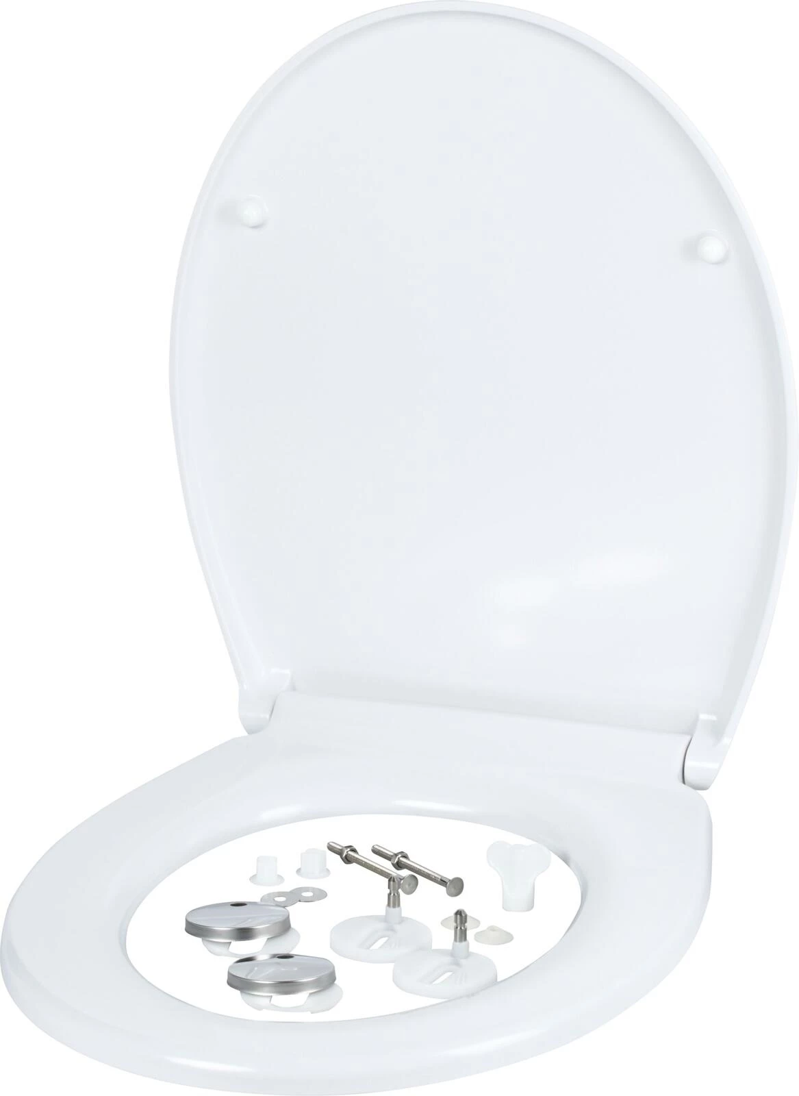 Avec abaissement automatique pour une fermeture en douceur du couvercle et de la lunette. Adaptation universelle aux installations de toilettes courantes. Matériau : plastique thermodurcissable. Dimensions : 47 × 36,5 cm.