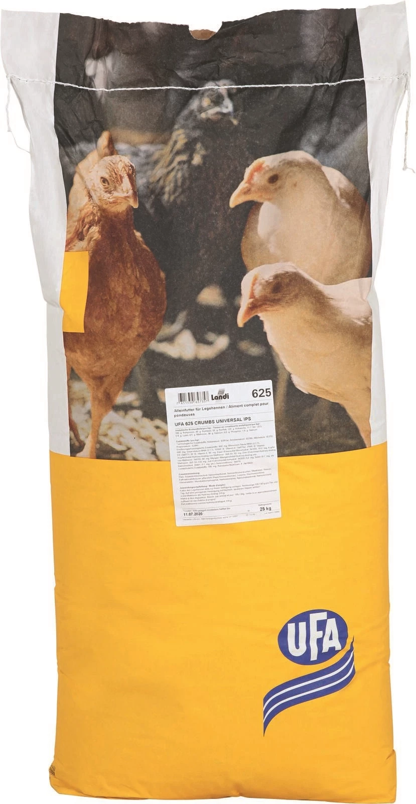 Un aliment complet est la solution la plus facile à utiliser pour nourrir correctement les pondeuses. UFA 625 est mis à libre disposition. L’aliment granulé incite à une ingestion élevée. Les granules assurent une prise alimentaire élevée et s’écoulent facilement dans l’automate. Dès la 50ème semaine de vie il est recommandé de compléter la ration avec 2-3 g de coquillages ou du grès calcaire, car la demande augmente à partir de cette phase.