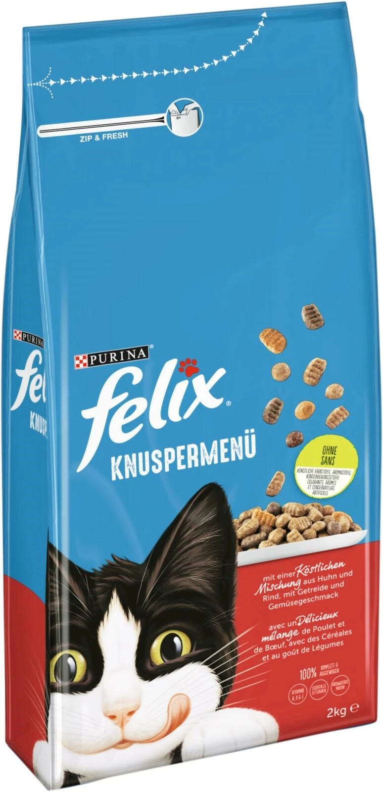 Felix avec viande a été développé spécialement pour fournir à votre petit diable le bon mélange d'alimentation savoureuse et équilibrée en un repas complet. Un mélange équilibré d'ingrédients savoureux avec bœuf, poulet, céréales et apport en légume en différentes formes votre chenapan n'arrête plus de ronronner.