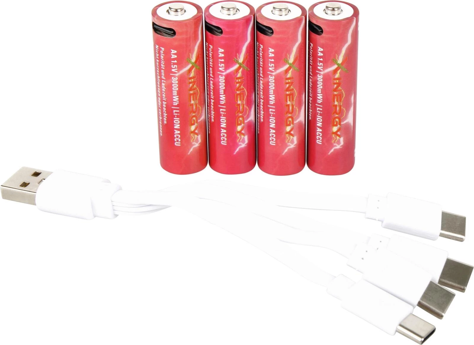 Les puissantes piles Li-Ion AA d'une capacité de 2000 mAh sont la source d'énergie parfaite pour les appareils à forte consommation d'énergie tels que les appareils photo numériques, les jouets, les télécommandes ou les claviers sans fil. Elles se rechargent facilement grâce au câble de recharge USB-C fourni. Le câble dispose d'un port USB-A à brancher sur des blocs d'alimentation, des batteries externes ou des ordinateurs, ainsi que de quatre fiches USB-C permettant de recharger jusqu'à quatre piles à la fois.