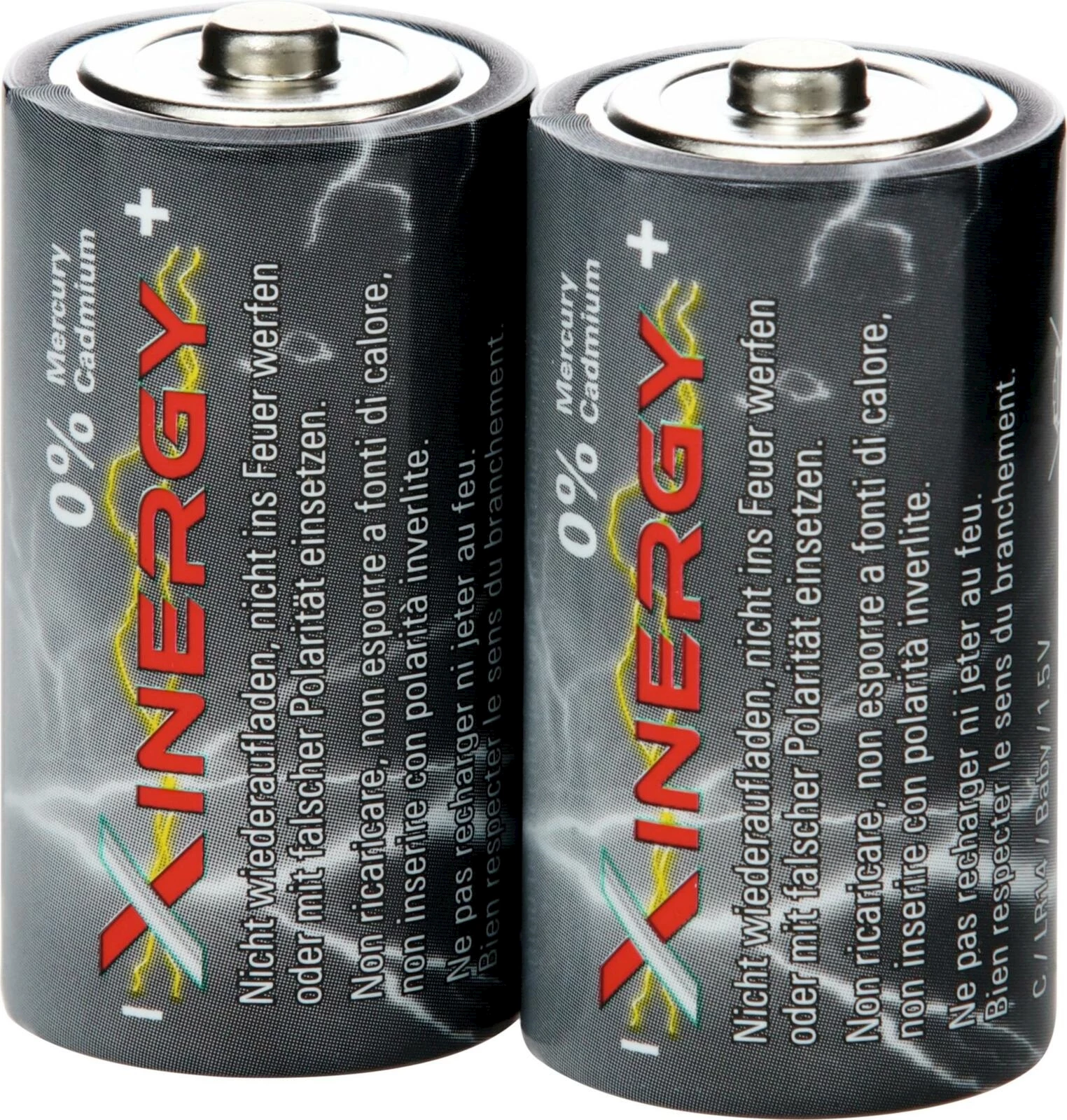 12 piles alcalines au manganèse LR14 (Typ C) d’une capacité de 7200 milliampères-heures. Les piles de ce type sont souvent utilisées dans les jouets pour enfants. Les piles se conservent environ 5 ans à 21 °C.