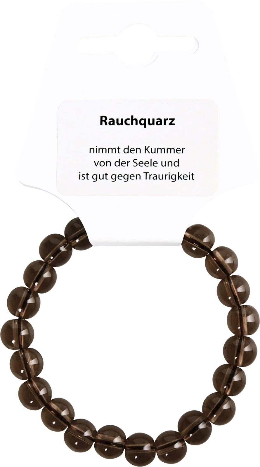 Le bracelet en pierre de quartz fumé avec des perles d'environ 8 mm est enfilé sur une bande élastique, de sorte qu'il s'adapte à tous les poignets. Le quartz fumé soulage le chagrin, renforce la vitalité et réduit le stress.
