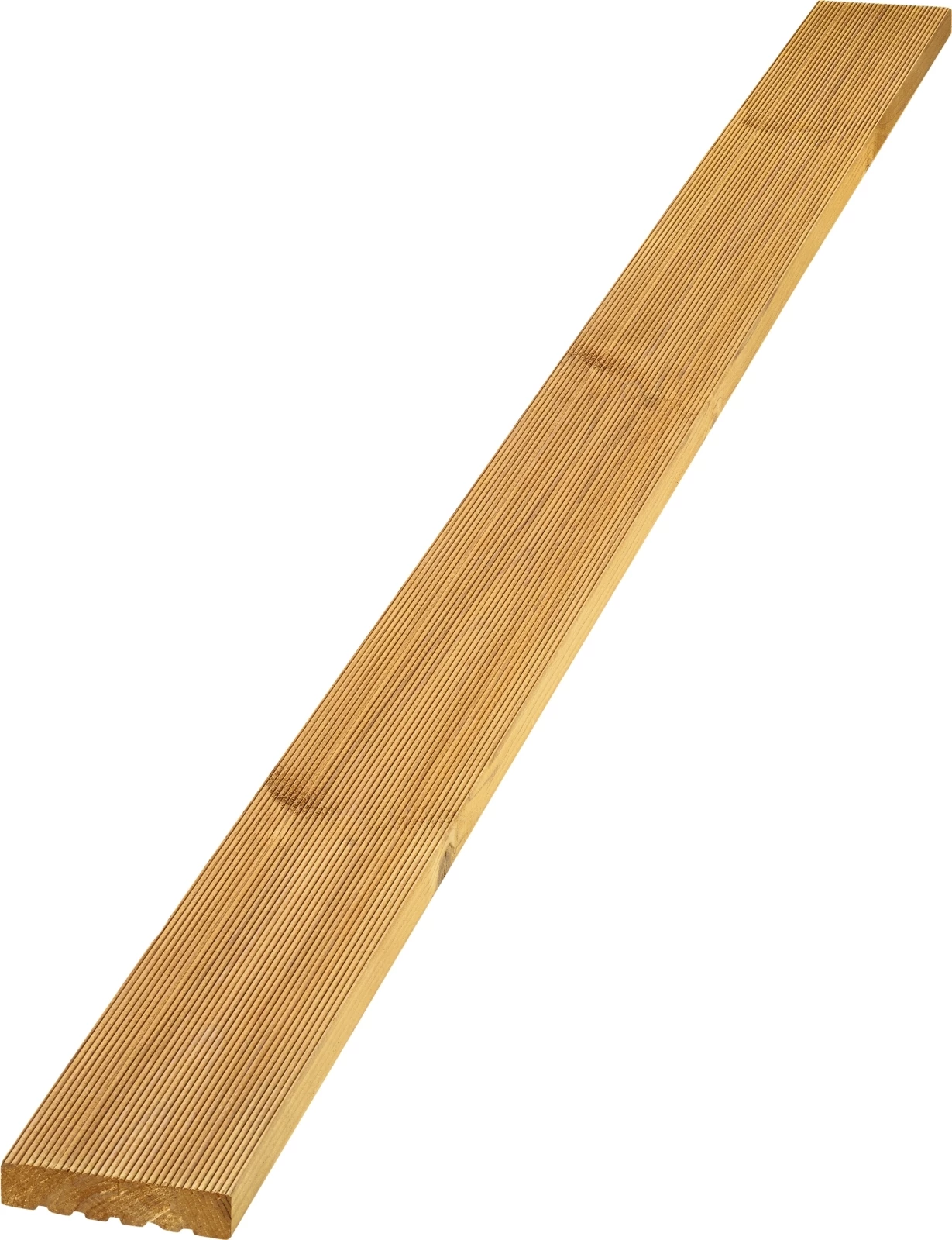 Traité à la chaleur, à la vapeur et à l'eau. Sans traitement chimique. Produit naturel et écologique en bois de pin nordique (Pinus sylvestris) certifié PEFC. Excellente résistance biologique. Classe d'utilisation I-II. Agréable à utiliser. Sans résine. Traitement final recommandé. Sans cela, le produit obtient une patine grise naturelle. Dimensions : 210 × 11,8 × 2,6 cm.