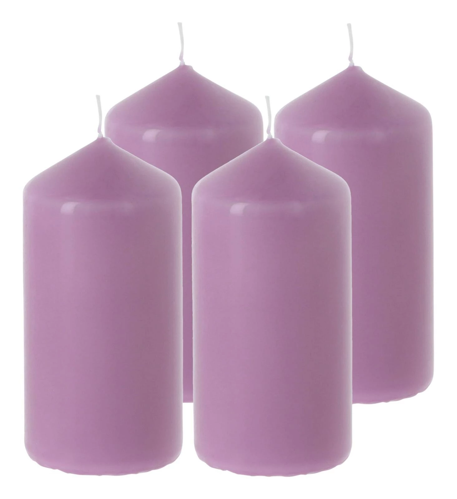 La bougie cylindrique en violet a une durée de combustion d’environ 23 heures et est composée à 100 % de paraffine. La livraison comprend 4 pièces. Elles sont disponibles dans différentes couleurs. Diamètre : 5 cm. Hauteur : 10 cm.