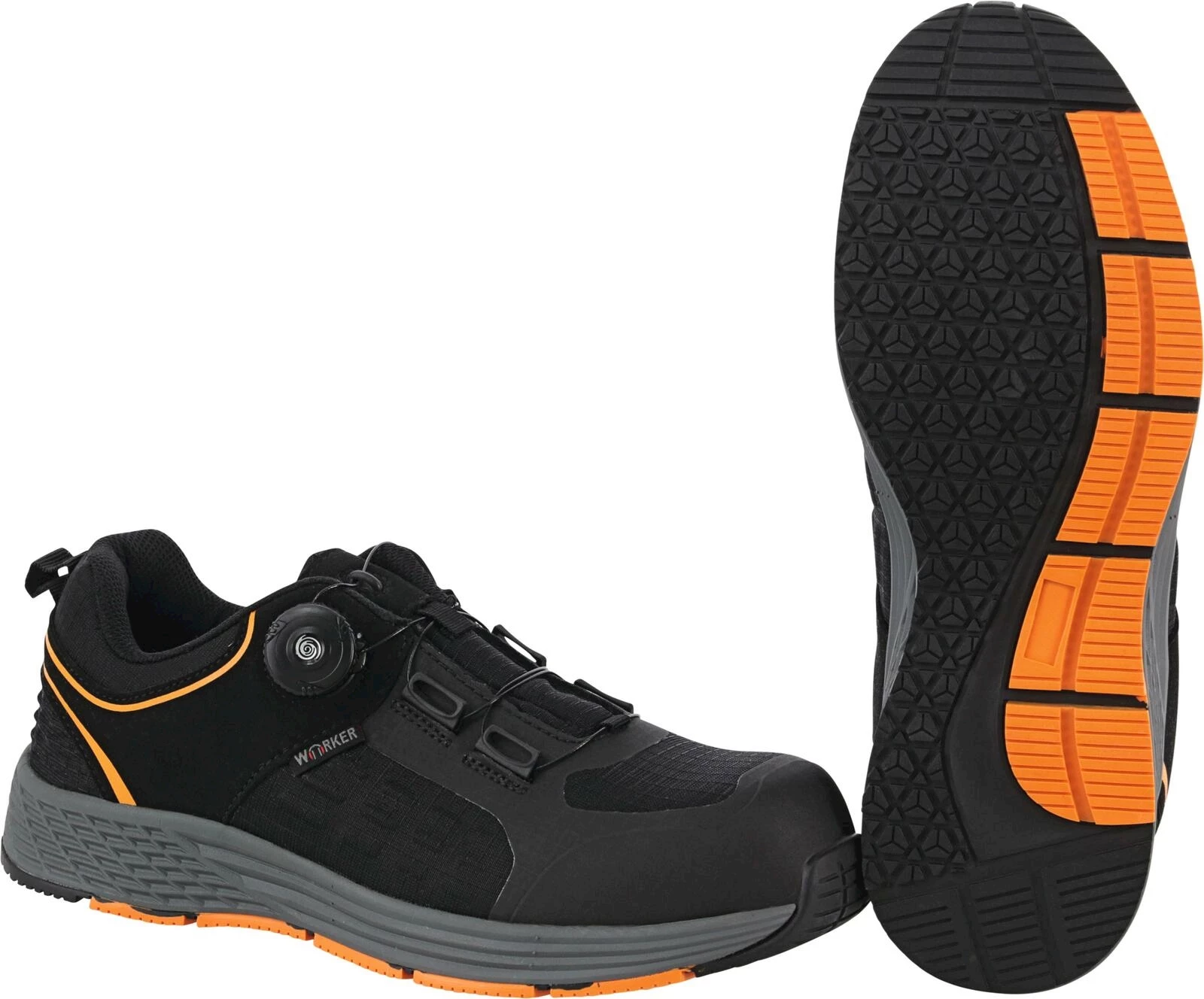 Wörker. Avec embout et semelle en acier. Fermeture rotative innovante. Semelle extérieure : antistatique, résistante à l'essence et à l'huile. Classe de sécurité : S3. Tailles: 37-46.
