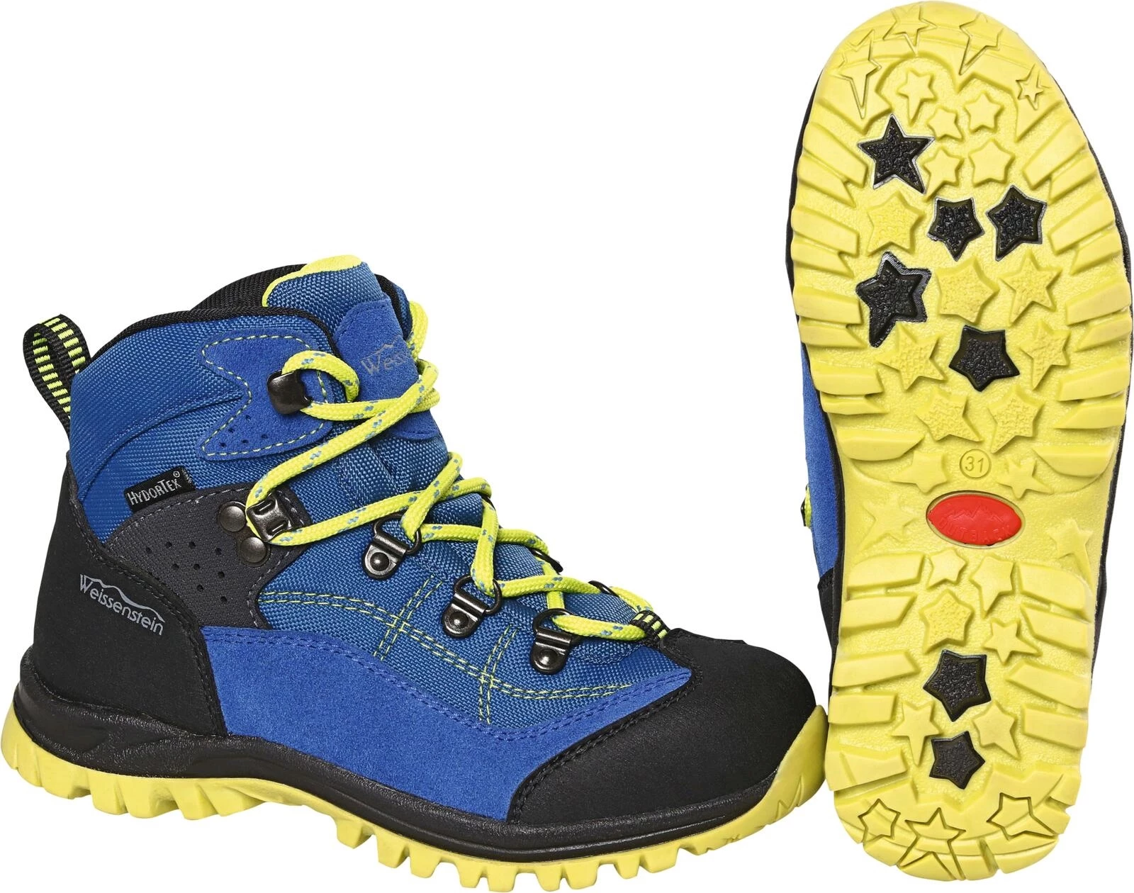 Weissenstein. En daim. Bonne protection contre l’eau grâce à la membrane Hydrotex. Avec semelle Phylon amortissante et profilé TPR. Pointures : 31 – 35. Coleur: Bleu.