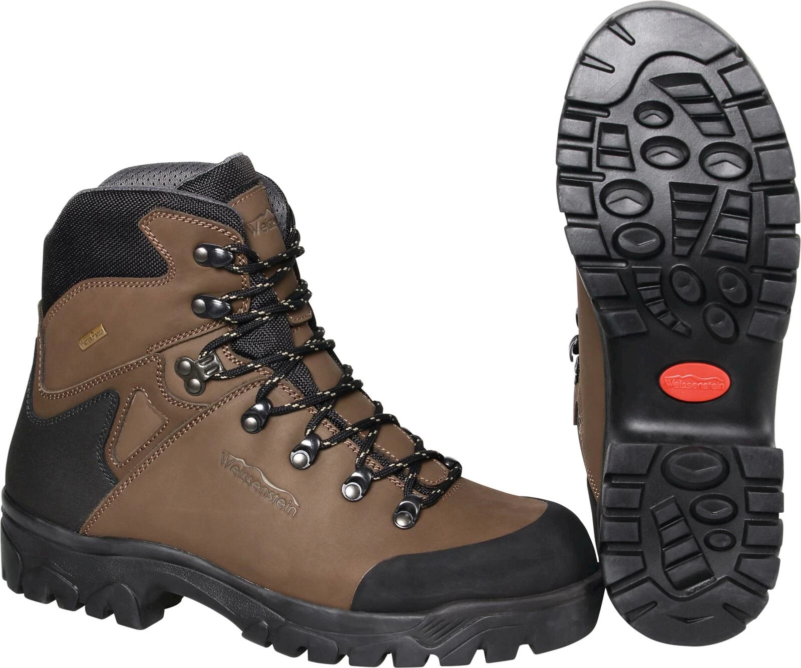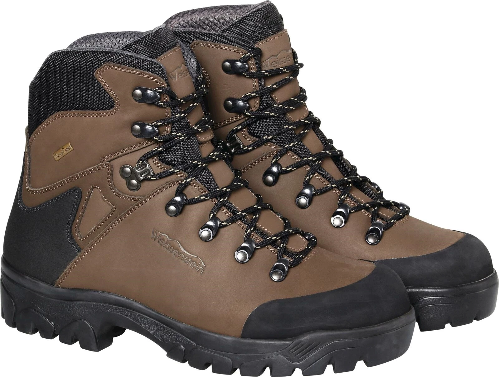 Weissenstein. En cuir nubuck. Avec membrane imperméable et respirante. Bout caoutchouté pour protéger les orteils. Pointures : 39 - 47.