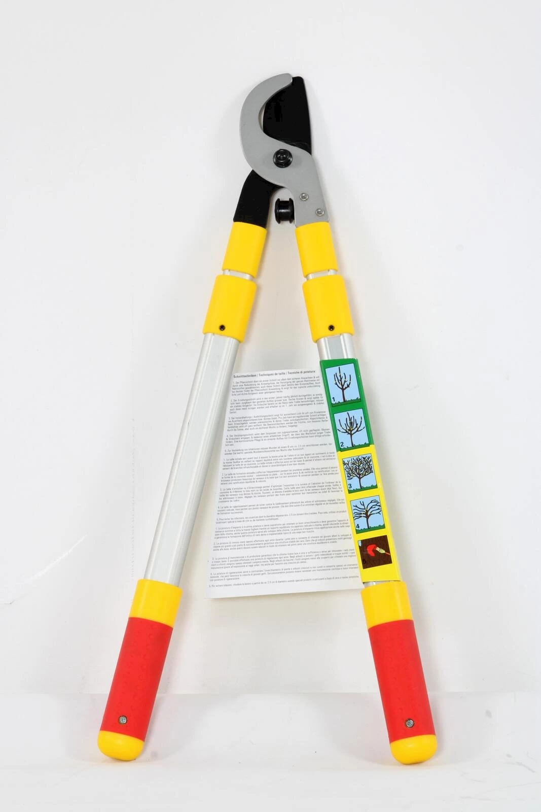 Réglable sur plusieurs positions. Longueur totale: 62 - 92 cm. Permet de couper des branches jusqu’à un Ø 38 mm.