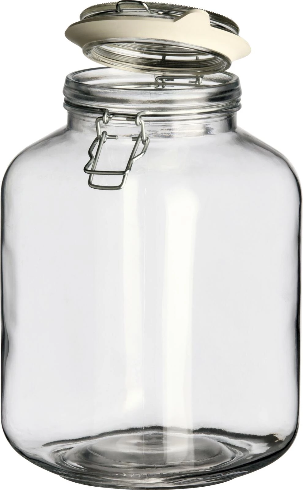 Le bocal transparent a un volume de remplissage de 300 cl. Le couvercle en verre avec joint en caoutchouc est muni d'une fermeture à étrier métallique. Le bocal peut être utilisé pour la mise en conserve, la conservation ou la décoration. Poids : 1,2 kg. Dimensions : 14,2 × 14,2 × 23,7 cm.