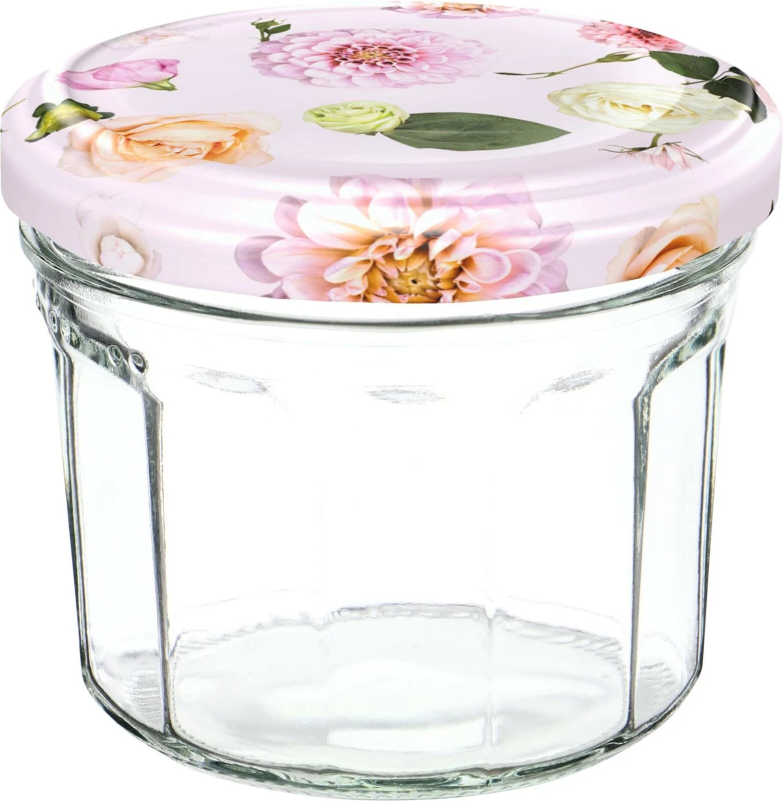 Avec bouchon à vis de 82 mm « Springflower rosa ». Idéal pour les pâtes à tartiner, le miel ou les épices. Dimensions : 7,88 × 7,88 × 7,03 cm.