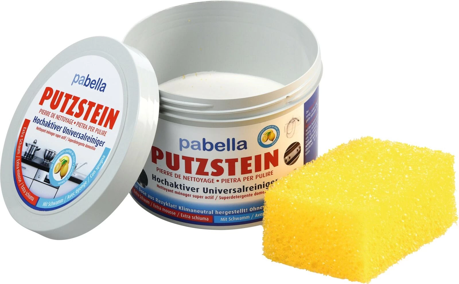Frotter légèrement sur la pierre de nettoyage avec une éponge humide. Presser ensuite plusieurs fois l’éponge pour faire mousser. Nettoyer l’objet puis rincer à l’eau claire.