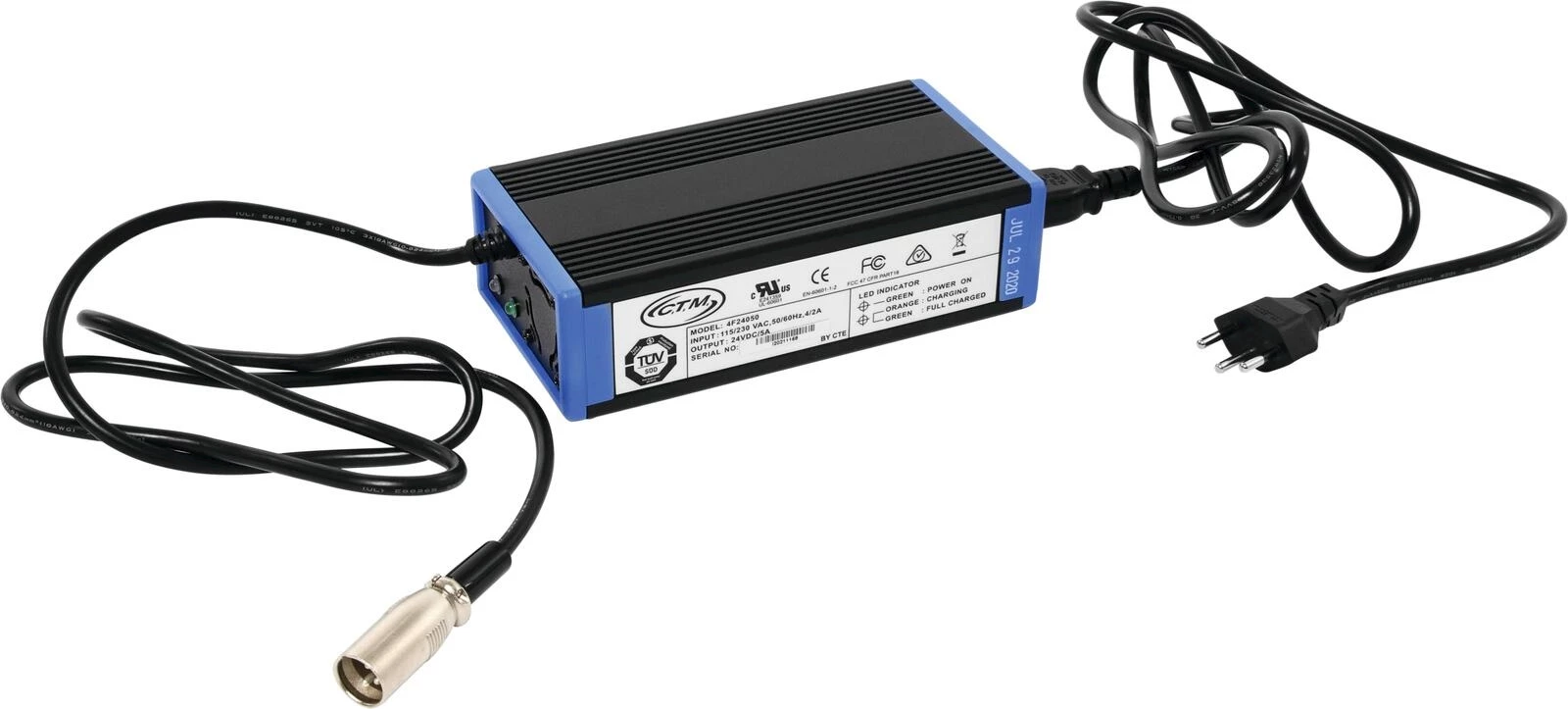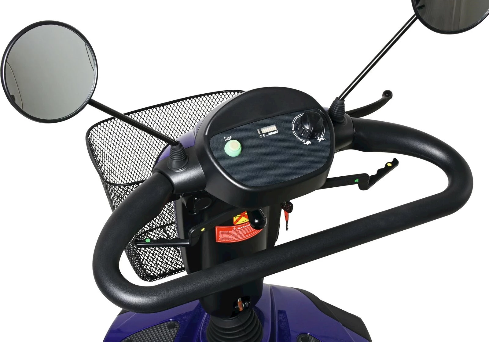 Bouton rotatif pour le réglage en continu de la vitesse, marche avant et arrière commandables par bascule, feu avant, feu stop, affichage de l'état de la batterie (état de charge), panier avant, système de freinage électromécanique avec frein à main supplémentaire, siège confort pivotant ajustable et incl. appui-tête, accoudoirs rabattables, rétroviseurs gauche et droit, roues anti-basculement à l'arrière, déverrouillage manuel de la boîte de vitesses, guidon D périphérique rembourré, châssis à suspension avant, serrure de contact avec deux clés, chargeur de batterie externe. Une charge complète de la batterie nécessite environ 8 heures. Le rayon de braquage du scooter électrique est de 154 cm.