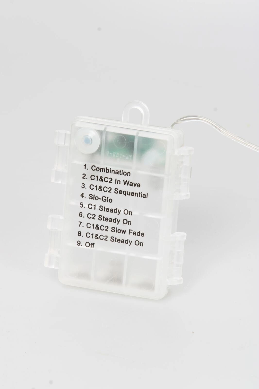 Guirlande lumineuse à piles pour l'intérieur et l'extérieur avec 10 LED, minuterie et 8 fonctions. Couleur de lumière : blanc chaud. Longueur : 230 cm. Piles (3 × AA) non comprises.