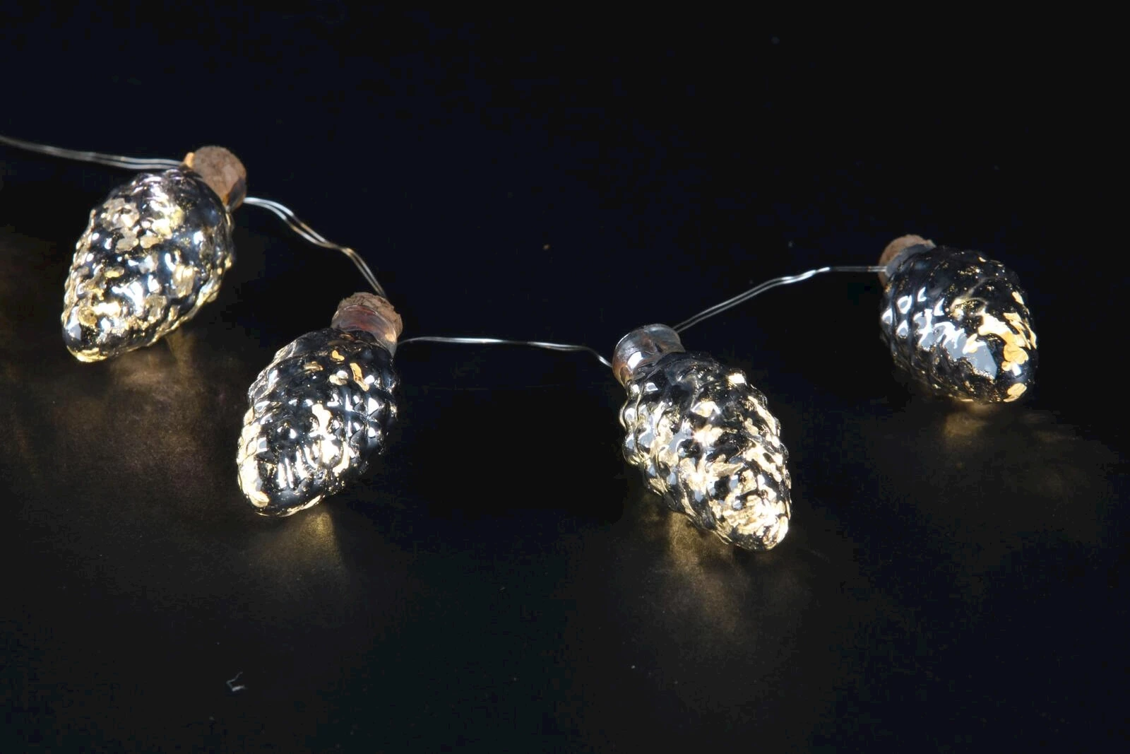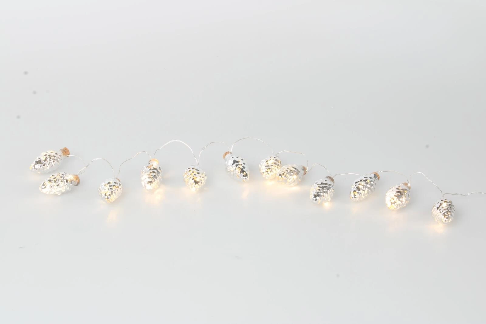La guirlande lumineuse en forme de pomme de pin vous permet de créer une ambiance chaleureuse et conviviale dans votre maison. La chaîne est en plastique de haute qualité et possède 12 LED blanc chaud en forme de pomme de pin, chacune mesurant 4,8 cm de haut. La guirlande lumineuse est alimentée par 2 × piles AA (non fournies).