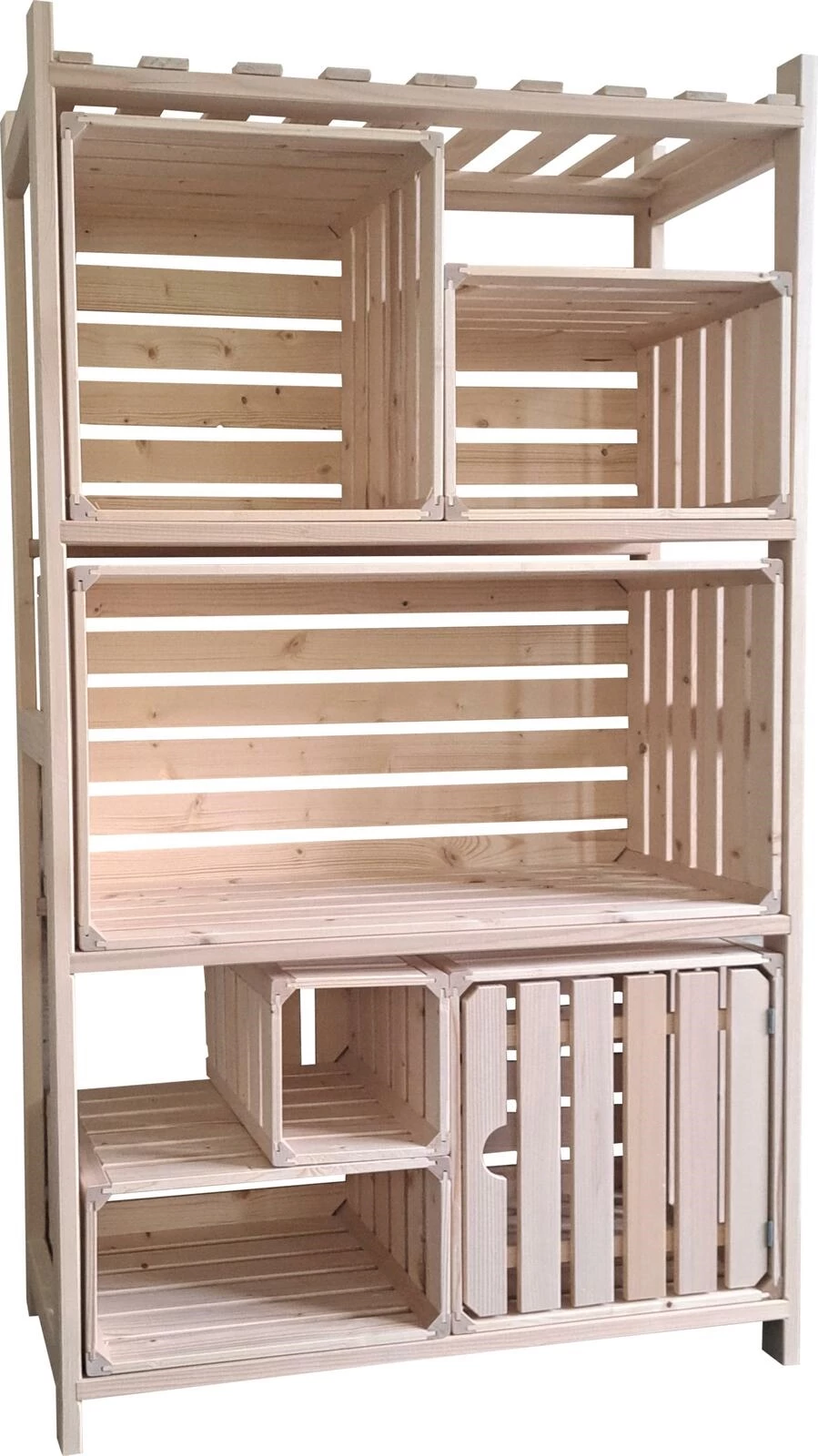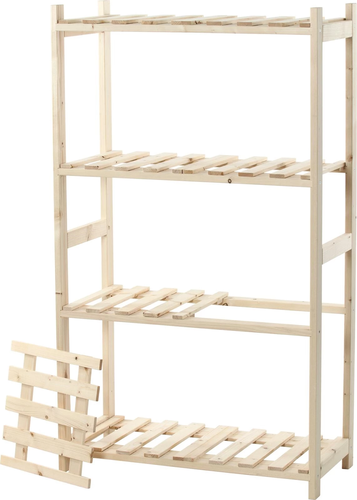 Convient aux harasse résidentielles. Montage rapide et facile. Capacité de charge maximale par étagère : 35 kg. L×H×P : 75 × 129 × 35 cm. Matériel de montage inclus. Sans harasses.