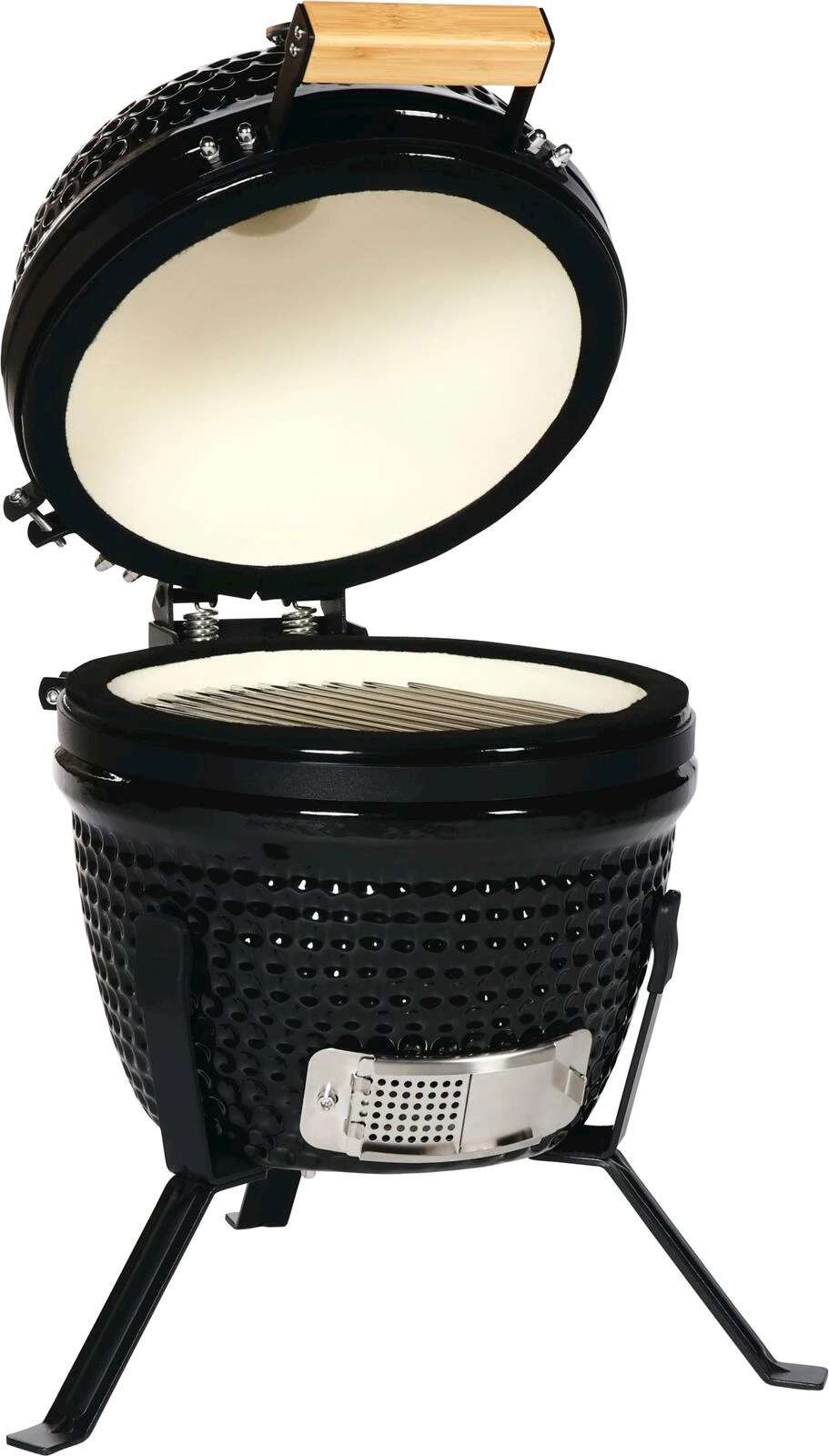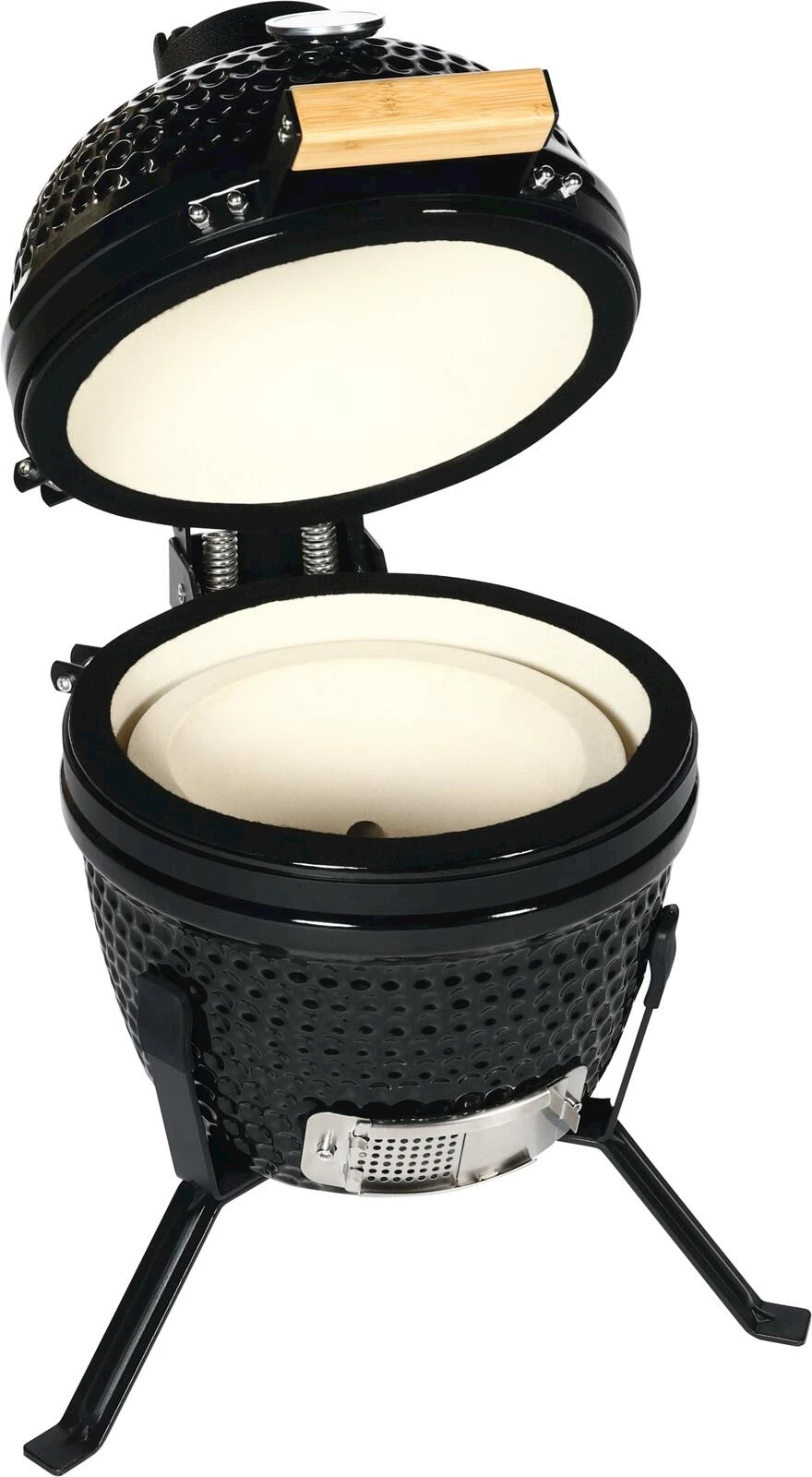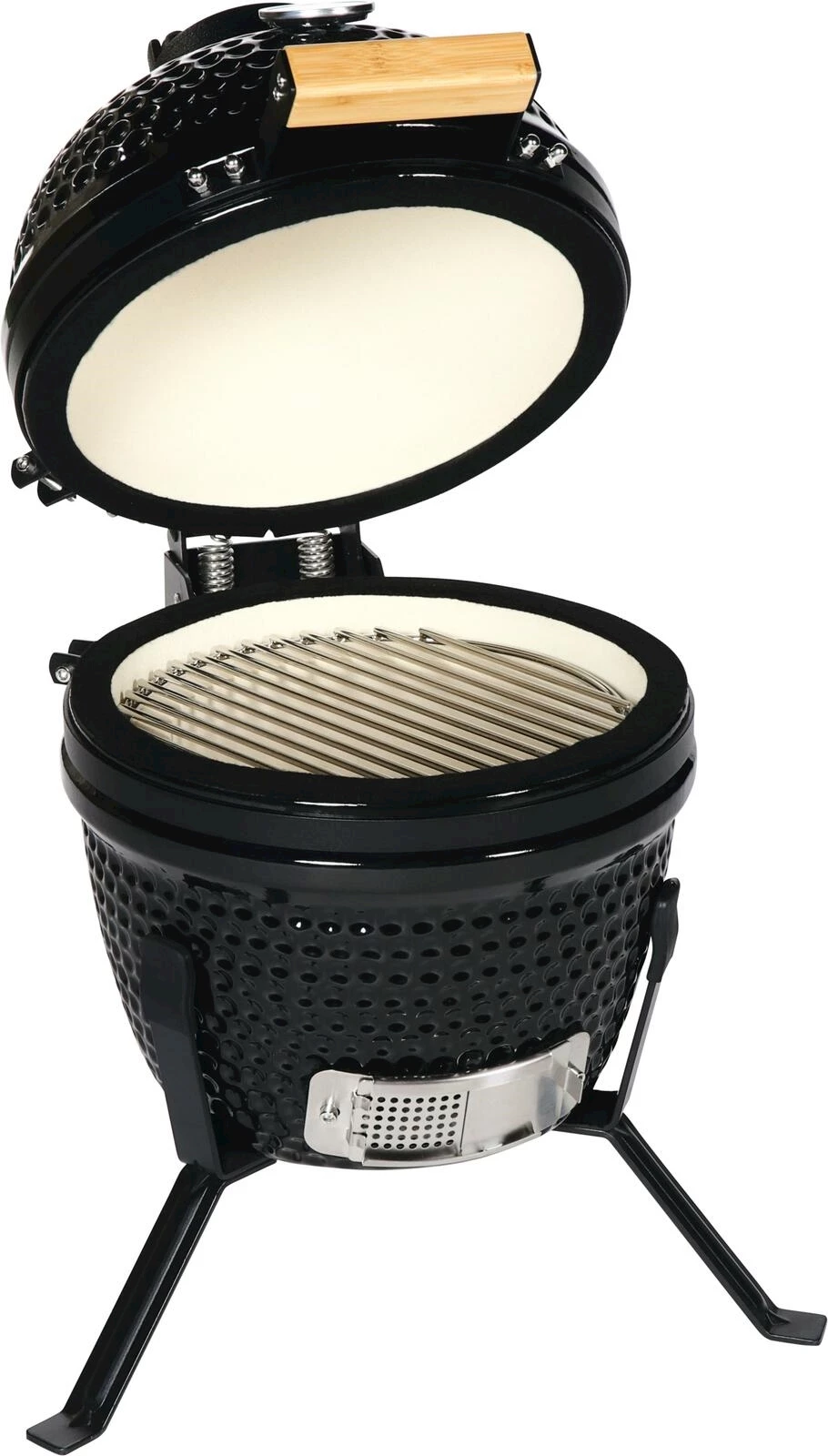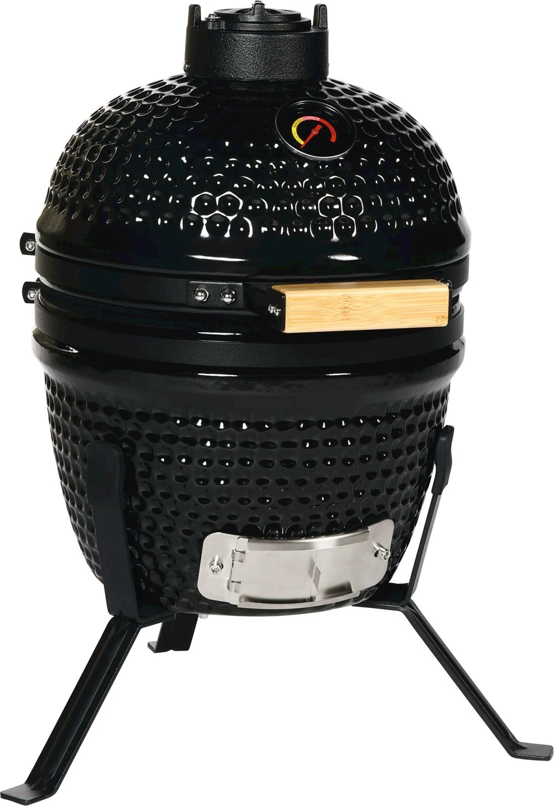 Avec son aspect unique, le gril céramique ovoïde de Grill Club attire tous les regards. Il se distingue par ses excellentes propriétés d'accumulation de chaleur, son énorme résistance à la chaleur jusqu'à 1000 °C. Il est idéal pour griller jusqu'à 2 personnes et la surface de cuisson a un diamètre de 27,0 cm. La poignée en bambou permet de relever ou d'abaisser le couvercle selon les besoins. Un thermomètre est fixé sur le couvercle, ce qui permet de garder un œil sur la température. La livraison comprend un barbecue complet avec une poignée, une grille et un plateau à cendres. Ses dimensions sont de 44 × 47 × 55 cm et la hauteur de la chambre de combustion est de 17,5 cm. Le barbecue pèse environ 22 kg. La garantie est de 5 ans.