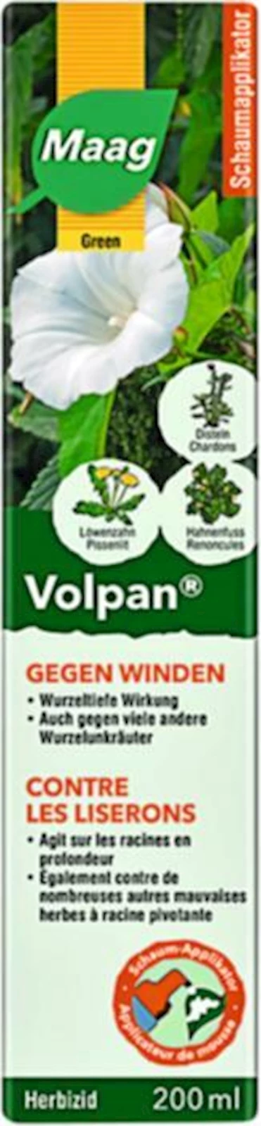 Le Volpan est idéal pour lutter contre les liserons dans le gazon. Le Volpan permet également de traiter de façon ciblée les autres mauvaises herbes telles que les chardons, les pissenlits , le plantain majeur, les orties, etc.