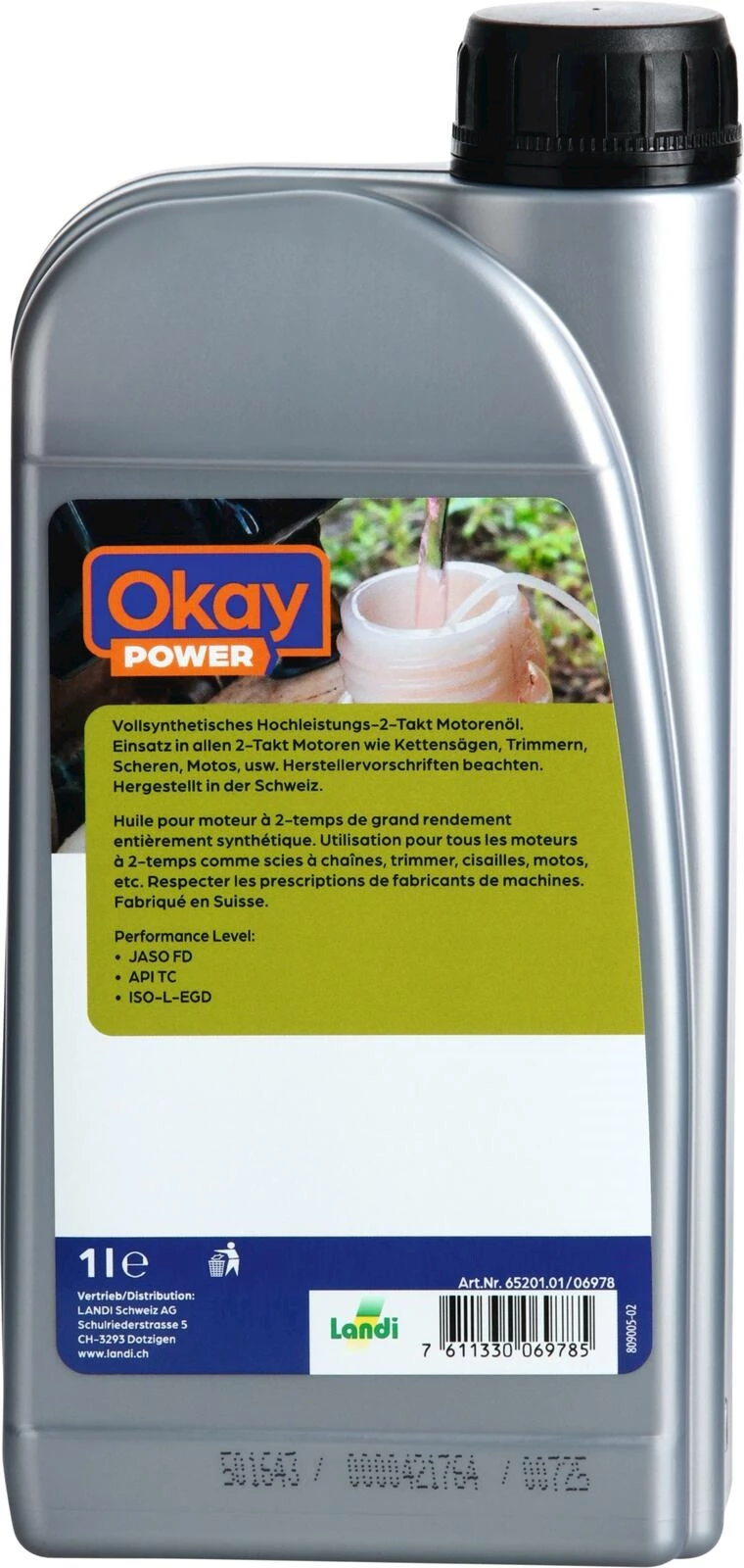 Il s’agit d’une huile moteur 2 temps entièrement synthétique à hautes performances. Utilisation pour tous les moteurs 2 temps. Convient aux tronçonneuses, tondeuses, cisailles, motos etc. Spécialement pour le mélange d’essence alkylate OECO-fuel Okay 4 temps à 2 temps ou pour augmenter la concentration dans le mélange de 2% à 4%. Respecter les prescriptions du fabricant. L’huile offre une protection optimale contre l’usure, une formulation anti-fumée (Low Smoke), réduit les résidus de combustion, est testée au niveau du catalyseur, homologuée pour la lubrification mixte et séparée et possède une autorisation officielle JASO FD.
