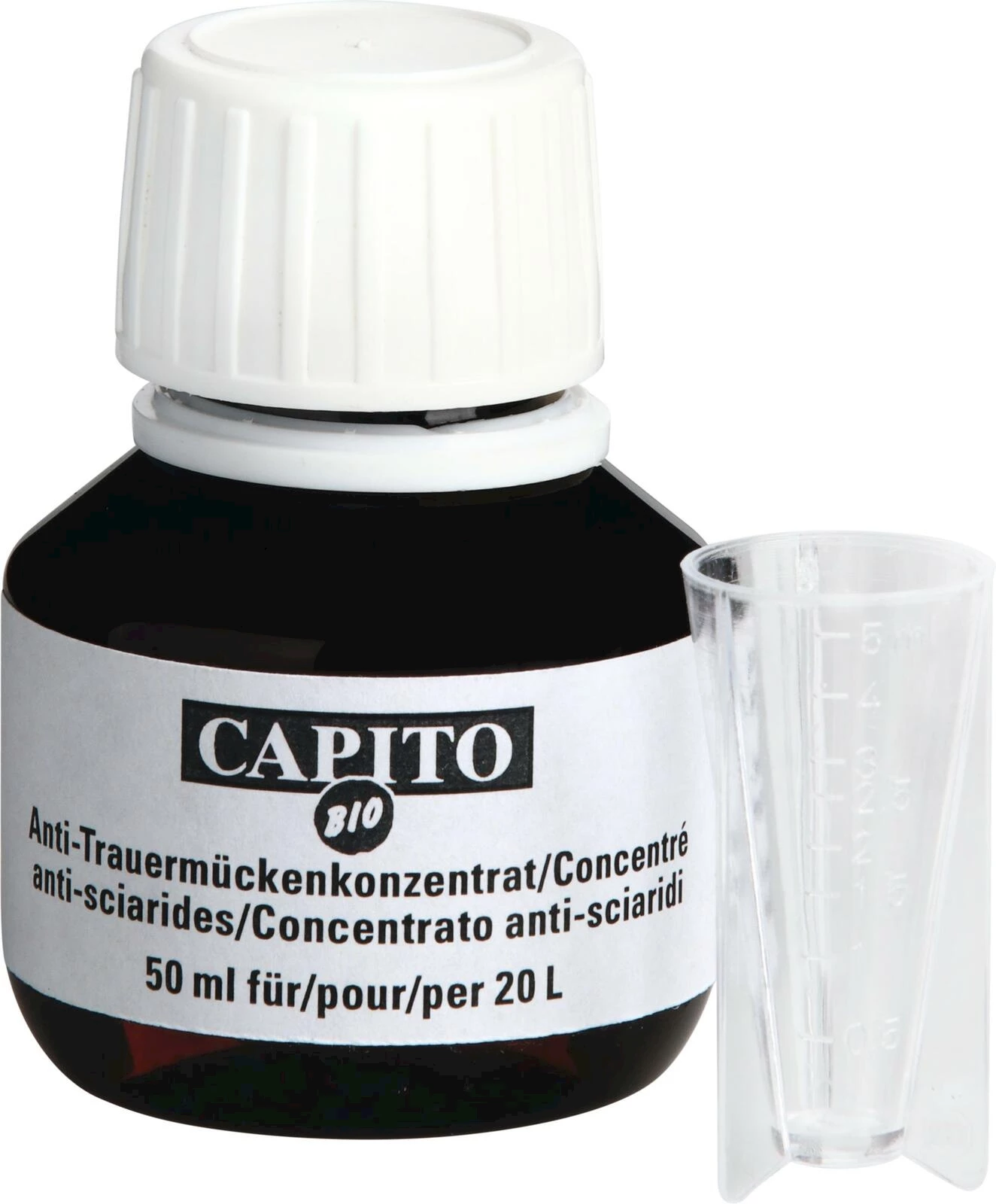 Capito. Préparation biologique hautement spécifique avec une action sélective contre les larves de sciarides. Le produit est versé dans la terre infestée pour lutter directement contre les larves du sol.