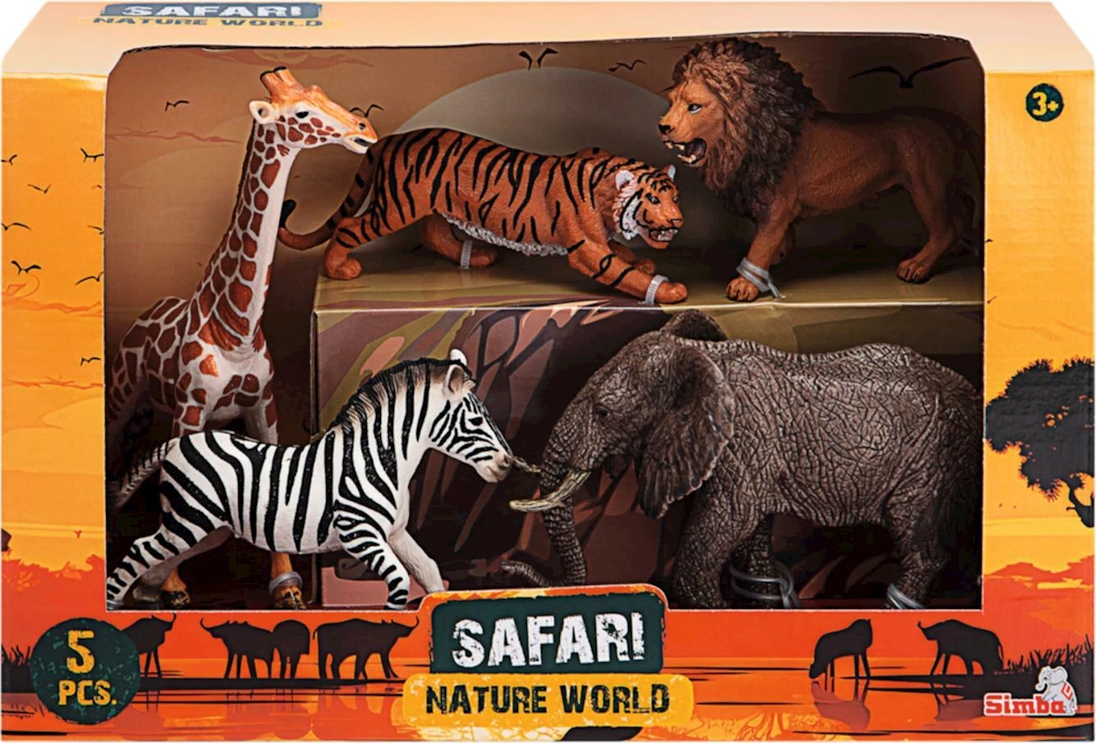 Ce set se compose d'une girafe, d'un lion, d'un zèbre, d'un tigre et d'un éléphant. Convient à partir de 3 ans.