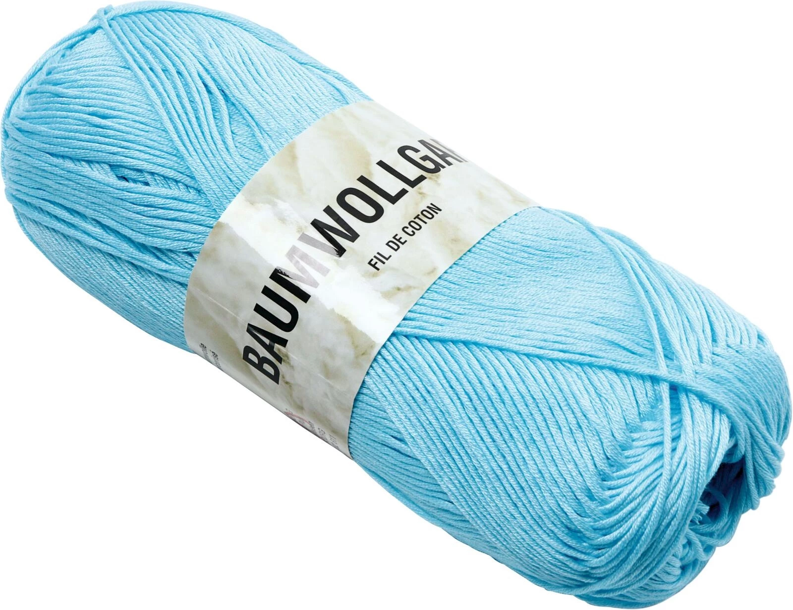 Avec le fil de bricolage bleu clair, vous pouvez crocheter, tresser, embellir, bricoler ou même emballer des cadeaux. Le fil est composé à 100 % de coton mercerisé. Mercerisé signifie que le fil de coton a été soumis à un processus d'ennoblissement sous tension, ce qui le rend plus brillant, plus résistant à la déchirure, plus riche en couleurs et plus indéformable. La pelote pèse 100 g.