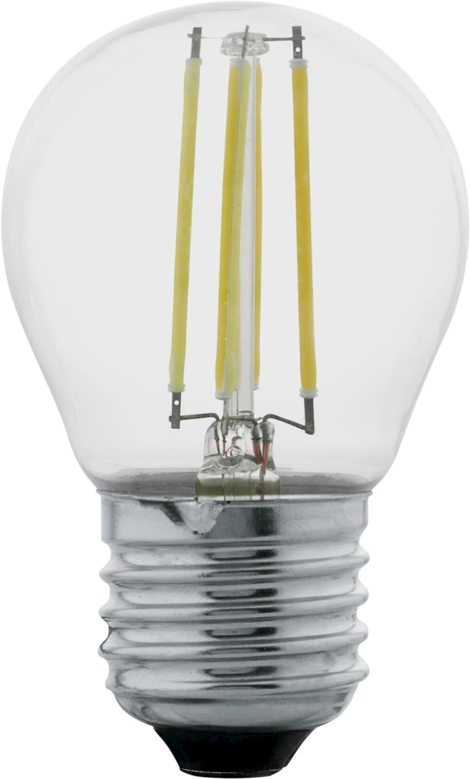 Luminaire polyvalent de 4 watts avec douille E27, composé de verre d’aspect transparent avec une température de couleur blanc chaud.