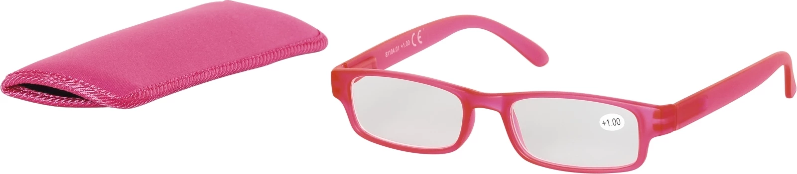En plastique. Différents modèles pour femmes et hommes disponibles. Dioptrie : 1,00 - 3,50. Illustration non-contractuelle.