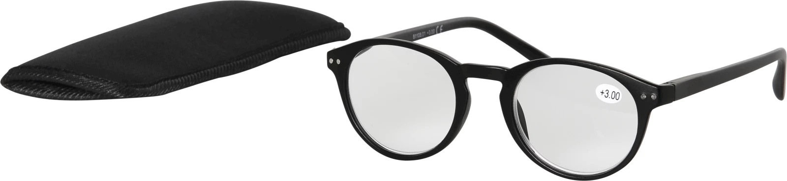 En plastique. Différents modèles pour femmes et hommes disponibles. Dioptrie : 1,00 - 3,50. Illustration non-contractuelle.