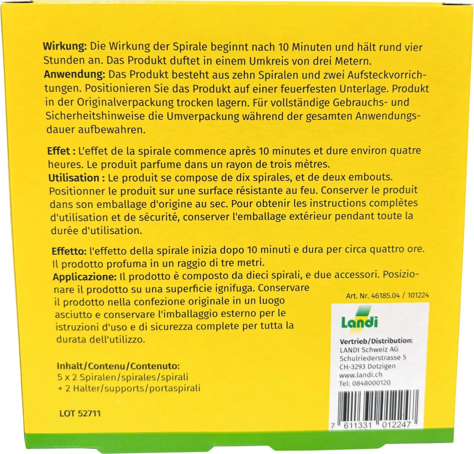 Capito. La spirale d'encens Citronella au parfum frais agit jusqu'à 4 heures. En papier recyclé, avec 2 embouts pour une utilisation facile.