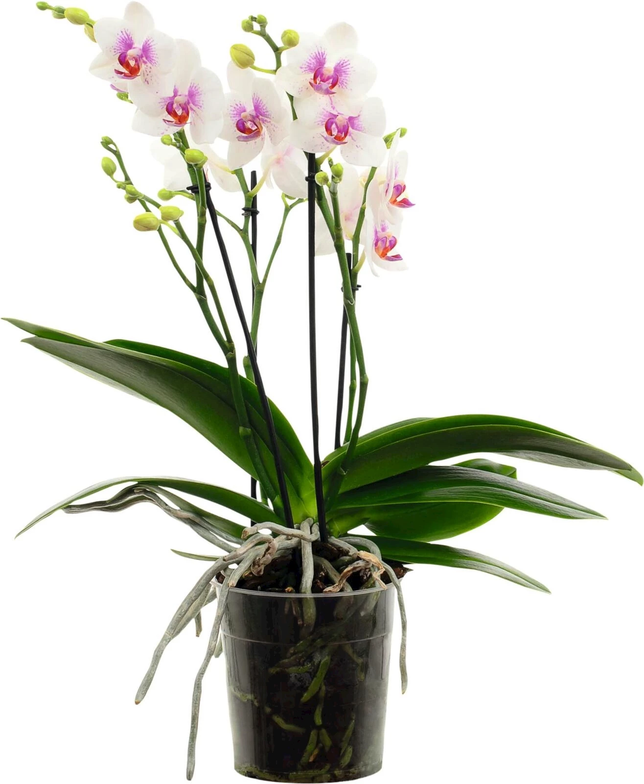 Le phalaenopsis, également connu sous le nom d'orchidée papillon, est une espèce d'orchidée très appréciée, célèbre pour ses fleurs époustouflantes qui durent longtemps. Ces fleurs, le plus souvent blanches ou roses, se distinguent par leur forme semblable à celle d'un papillon. La plante possède également des feuilles vertes lancéolées et un rhizome distinctif qui lui confère une apparence attrayante.