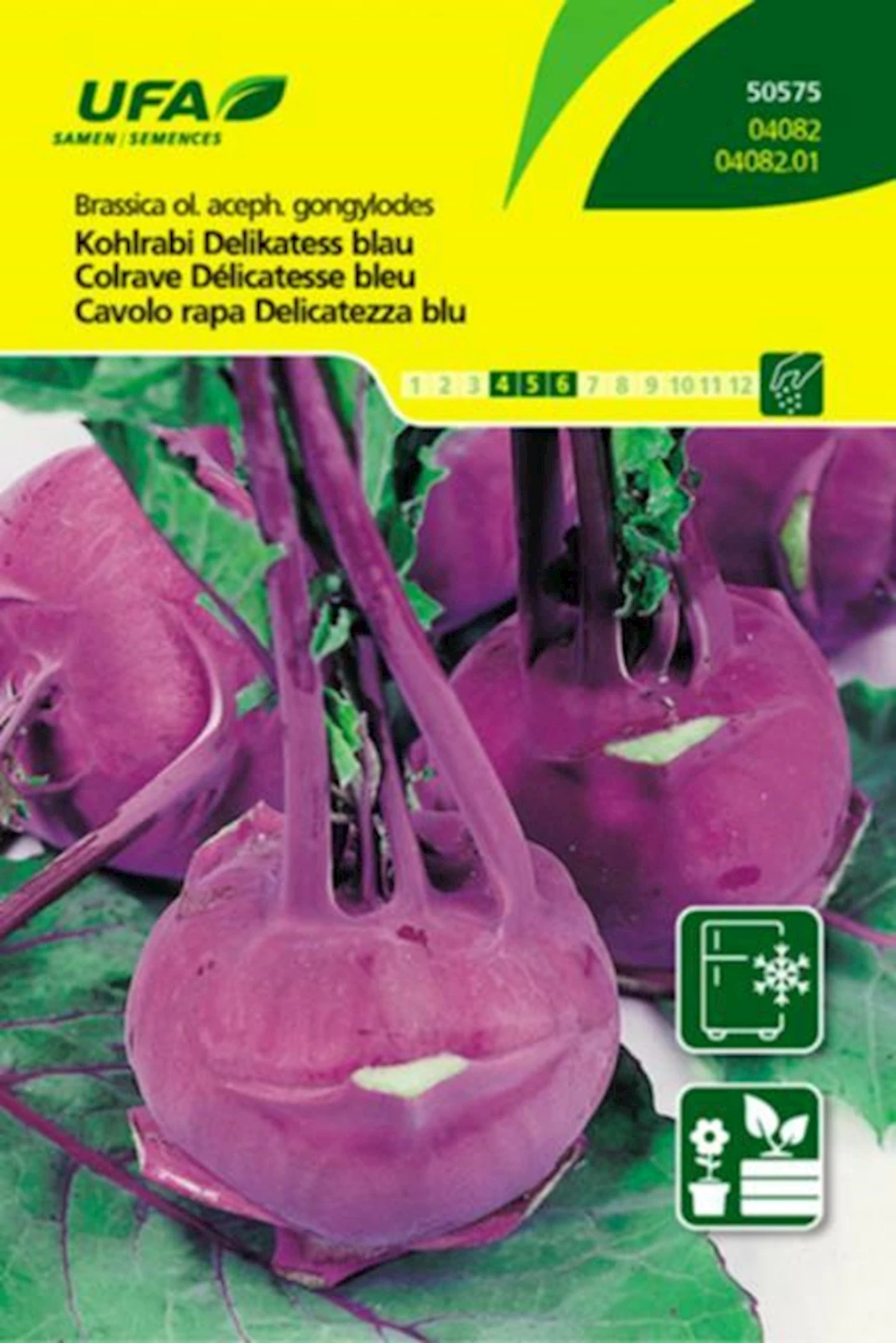 Le Brassica oleracea convar. acephala var. gongylodes « Délicatesse violet», également connu sous le nom de chou-rave Délicatesse violet, est une variété éprouvée et à haut rendement. Elle forme des tubercules de taille moyenne, rondes, bleu-violet, à l'arôme délicat, doux et sucré. Son aspect extérieur aux couleurs vives en fait un véritable accroche-regard dans le jardin, cependant sa chair reste claire et juteuse. Cette variété pousse rapidement, reste compacte (25 à 40 cm de hauteur) et est idéale pour les jardins potagers, les plates-bandes surélevées et la culture en jardinière.
