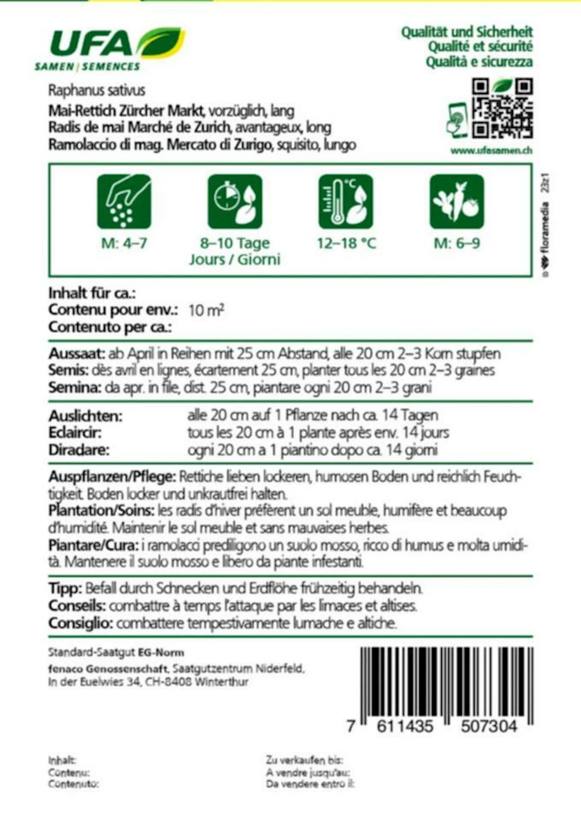Les radis de mai poussent rapidement et conviennent bien comme pré-culture avant des légumes tels que les concombres, les tomates ou les choux.