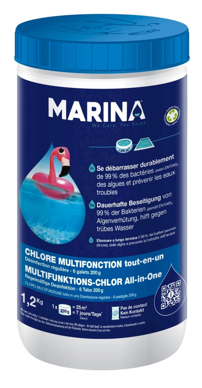 Les tablettes multifonctions MARINA offrent une solution efficace pour l'entretien complet de la piscine. Chaque tablette est formulée de manière à détruire 99,99 % des bactéries figurant sur la liste de la norme EN 1040. Outre leur puissant effet désinfectant, les tablettes offrent une désinfection à long terme qui garantit une propreté durable. De plus, elles sont enrichies d'agents anti-algues afin d'empêcher la prolifération des algues et de garder la piscine claire et accueillante. Un autre avantage des tablettes multifonctionnelles MARINA est leur fonction de clarifiant qui rend l'eau cristalline. Idéales pour l'entretien régulier des piscines, elles garantissent une eau propre et hygiénique à tout moment.