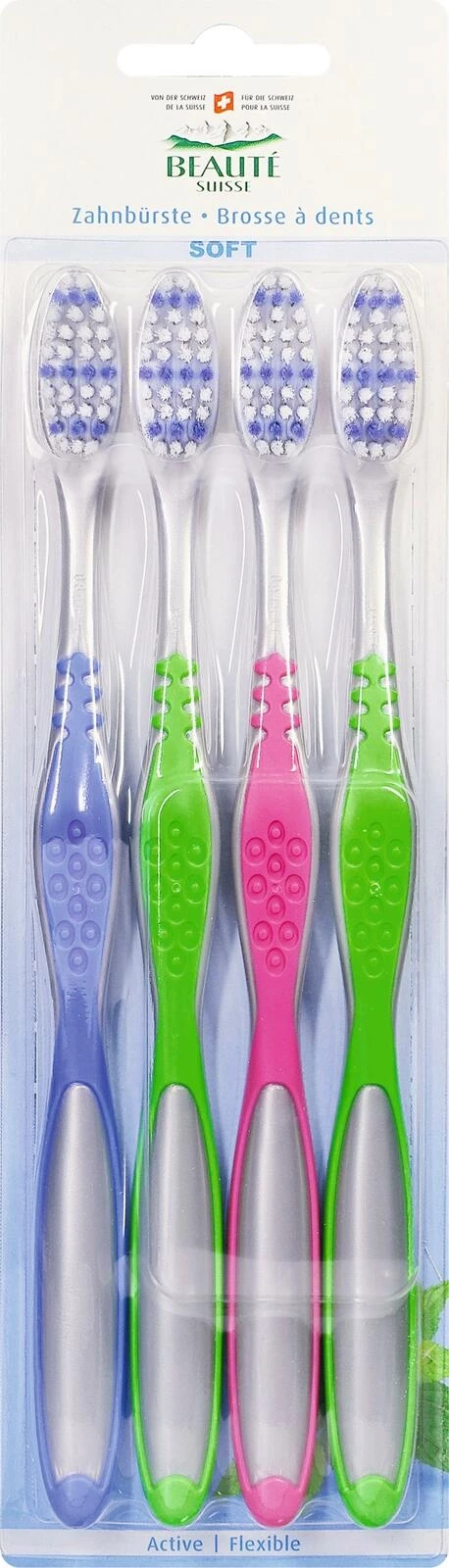 Beauté Suisse. Pour une haleine fraîche et des dents saines et solides. Élimination efficace de la plaque dentaire et massage des gencives.