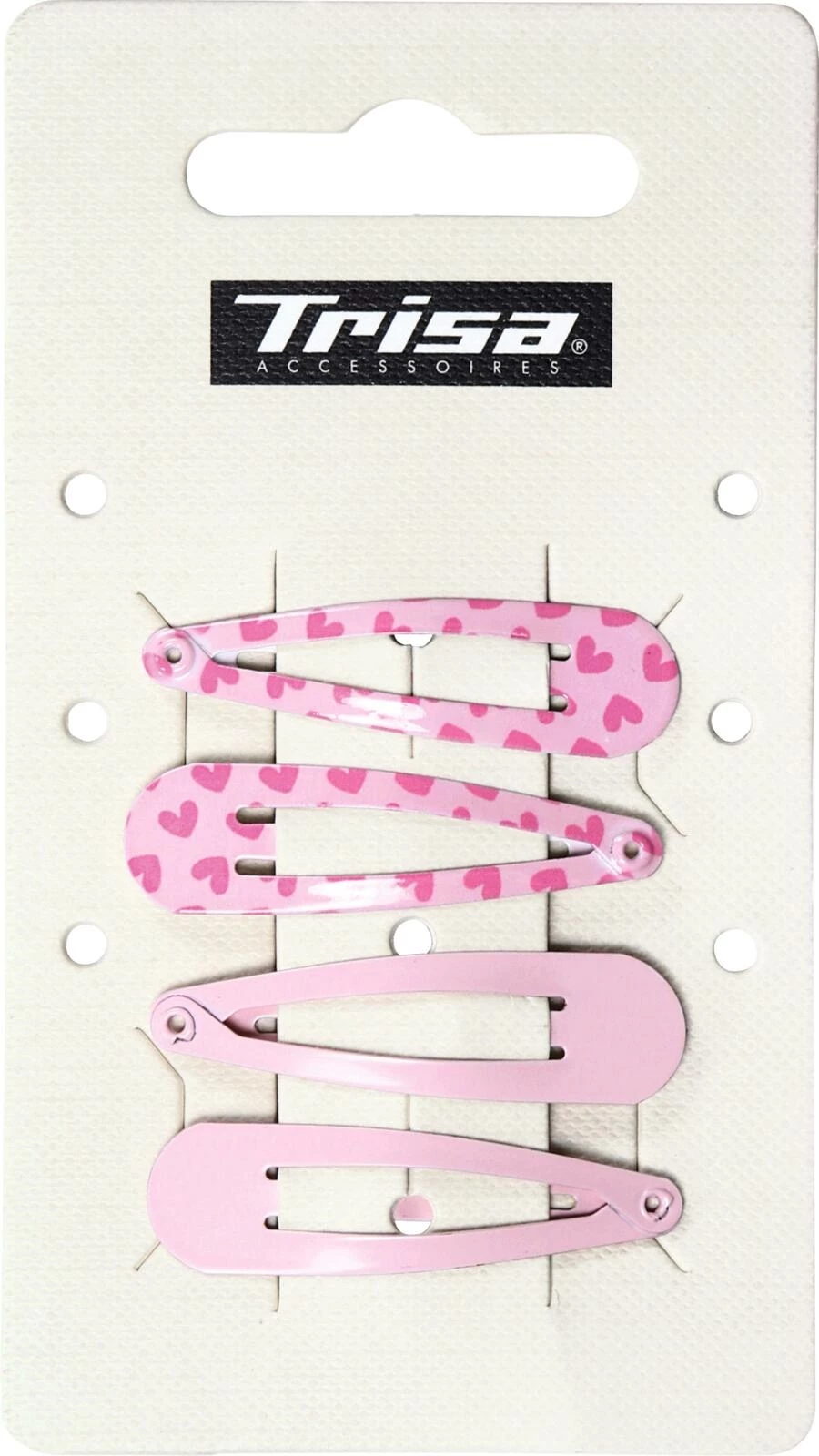 Set de 4 barrettes stylées : 2 en rose éclatant, 2 avec un motif de cœur. Maintien sûr grâce à la fermeture click-clack.