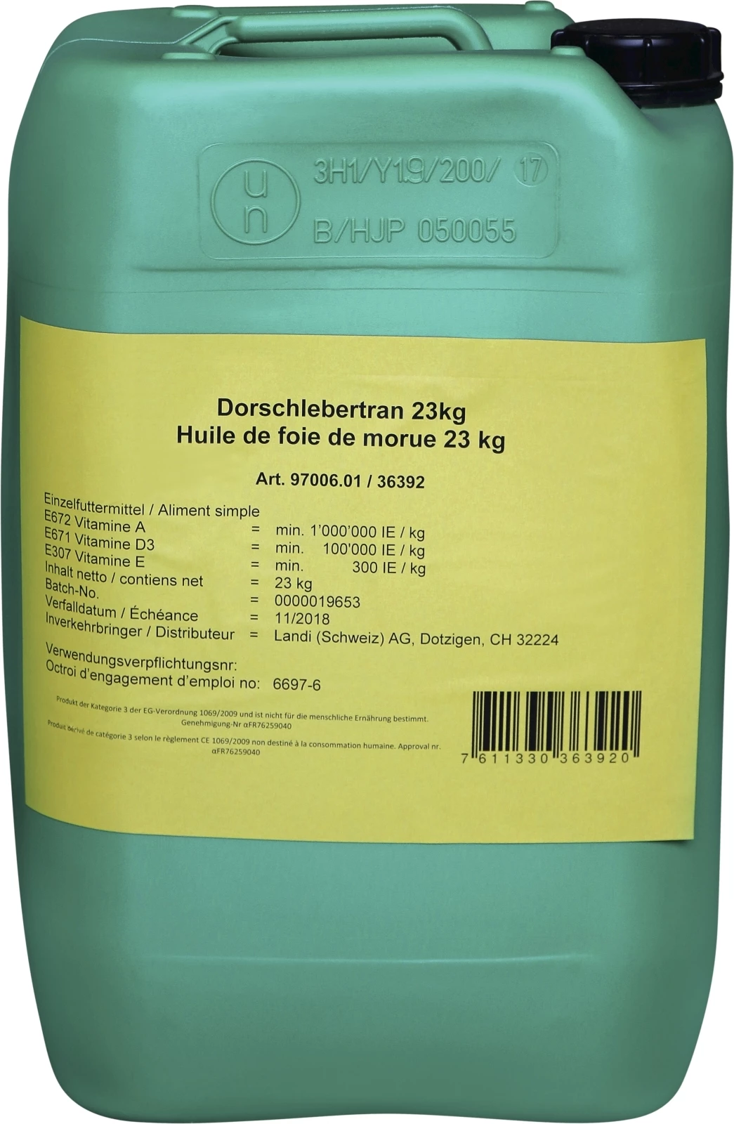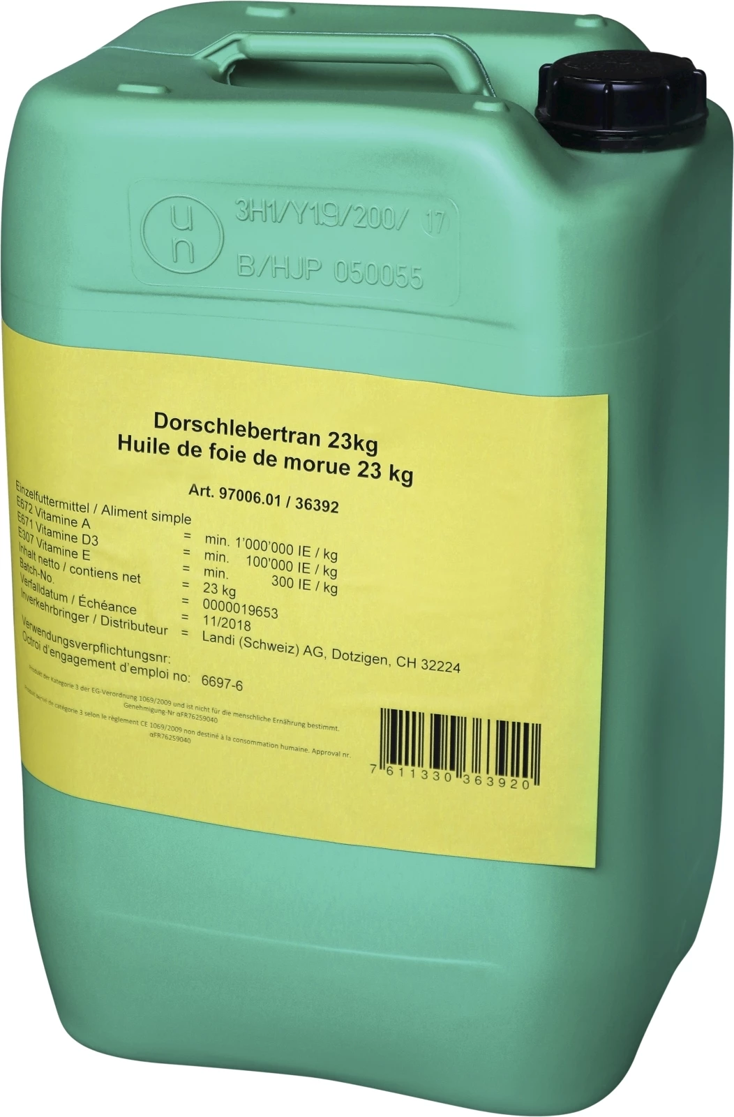 L'huile de foie de morue est un complément alimentaire naturel fabriqué à partir du foie de la morue. Elle est riche en acides gras oméga-3, en vitamines A et D et en oligo-éléments tels que le sélénium et le zinc. Les acides gras oméga-3 contenus dans l'huile de foie de morue sont particulièrement précieux, car ils contribuent à la santé cardiaque et peuvent réduire le risque de maladies cardiovasculaires. Les vitamines A et D contribuent au maintien d'une peau, de muqueuses et d'yeux sains. Le sélénium et le zinc sont des antioxydants importants qui renforcent le système immunitaire et protègent les membranes cellulaires. L'huile de foie de morue est souvent utilisée comme complément pour maintenir en bonne santé générale des animaux d'élevage. Elle peut également aider à améliorer la santé des articulations et à renforcer les os.