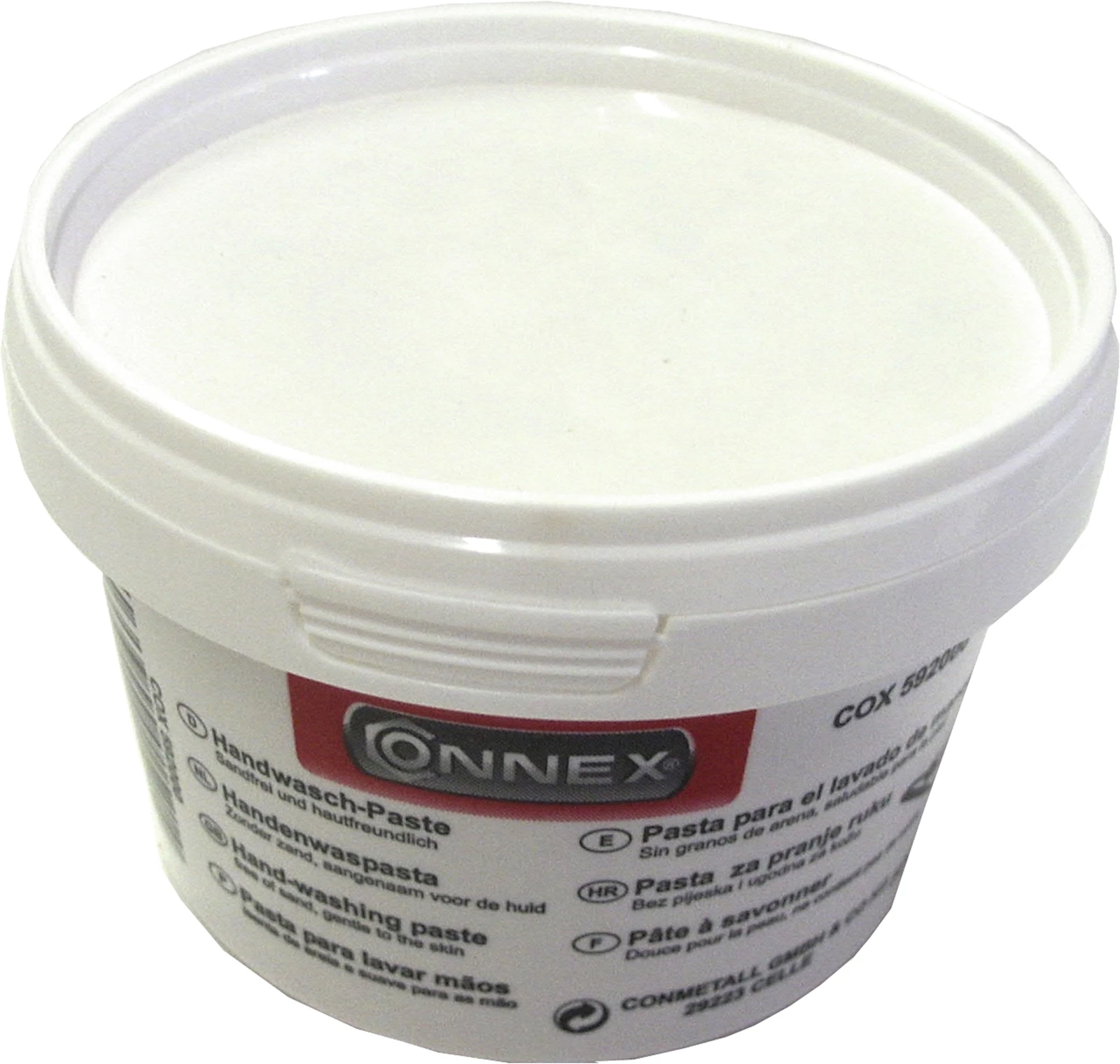 La pâte-savon pour les mains nettoie la graisse, le goudron, la peinture, etc. Elle ne contient pas de sable, est à base de farine de bois et n'agresse pas la peau. 500 g.