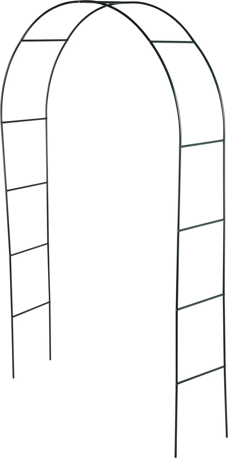 Support pour rosiers et autres plantes grimpantes. L'arche donne au jardin une dimension supplémentaire, de la hauteur. Si nécessaire, on peut aligner plusieurs arches les unes derrière les autres. Cela peut donner une arcade ombragée. La construction en tube d'acier stable et résistante aux intempéries mesure 240 cm de haut et 140 cm de large. Le diamètre des tubes est de 13 mm. Assemblage rapide et facile. Disponible en vert.
